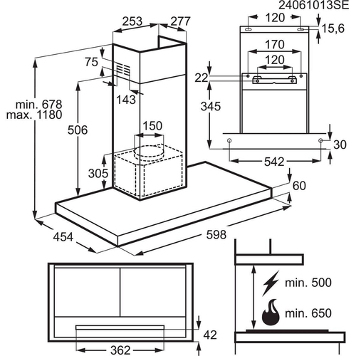Electrolux CAPPA CAMINO DECORATIVO T SHAPE CLASSE A 60 cm LFT826X MADE IN EUROPE. Potenza massima di estrazione: 600 m³/h, Tipo di estrazione: Aspirante/Filtrante, Classe di efficienza dinamica del fluido: A. Tipo: Cappa aspirante a parete, Colore del prodotto: Nero, Acciaio inox, Materiale della scocca: Vetro, Acciaio inox. Tipo di filtro antigrasso: Alluminio, Numero di filtri: 2 pz. Potenza lampadina: 7,5 W, Numero di lampadine: 1 lampadina(e), Tipo di Lampadina: LED. Classe efficienza energetica: A, Consumo energetico annuo: 62,5 kWh, Scala di efficienza energetica: Da A+++ a D