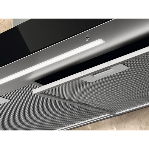Electrolux LFT826X Serie 700 Breeze 60 cm. Potenza massima di estrazione: 600 m³/h, Tipo di estrazione: Aspirante/Filtrante, Classe di efficienza dinamica del fluido: A. Tipo: Cappa aspirante a parete, Colore del prodotto: Nero, Acciaio inox, Materiale della scocca: Vetro, Acciaio inox. Tipo di filtro antigrasso: Alluminio, Numero di filtri: 2 pz. Potenza lampadina: 7,5 W, Numero di lampadine: 1 lampadina(e), Tipo di lampada: LED. Classe efficienza energetica: A, Consumo energetico annuo: 63 kWh, Scala di efficienza energetica: Da A+++ a D