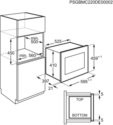 Electrolux KMFE264TEX. Posizionamento dell'apparecchio: Da incasso, Tipo di prodotto: Solo microonde, Capacità interna: 26 L. Carico di collegamento: 1400 W, Tensione di ingresso AC: 220-240 V, Frequenza di ingresso AC: 50 Hz. Larghezza: 594 mm, Profondità: 404 mm, Altezza: 459 mm
