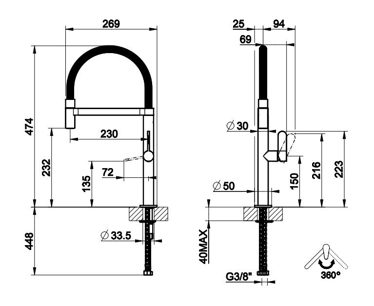 | Distanza tra foro di fissaggio e diffusore acqua | 23 cm |
