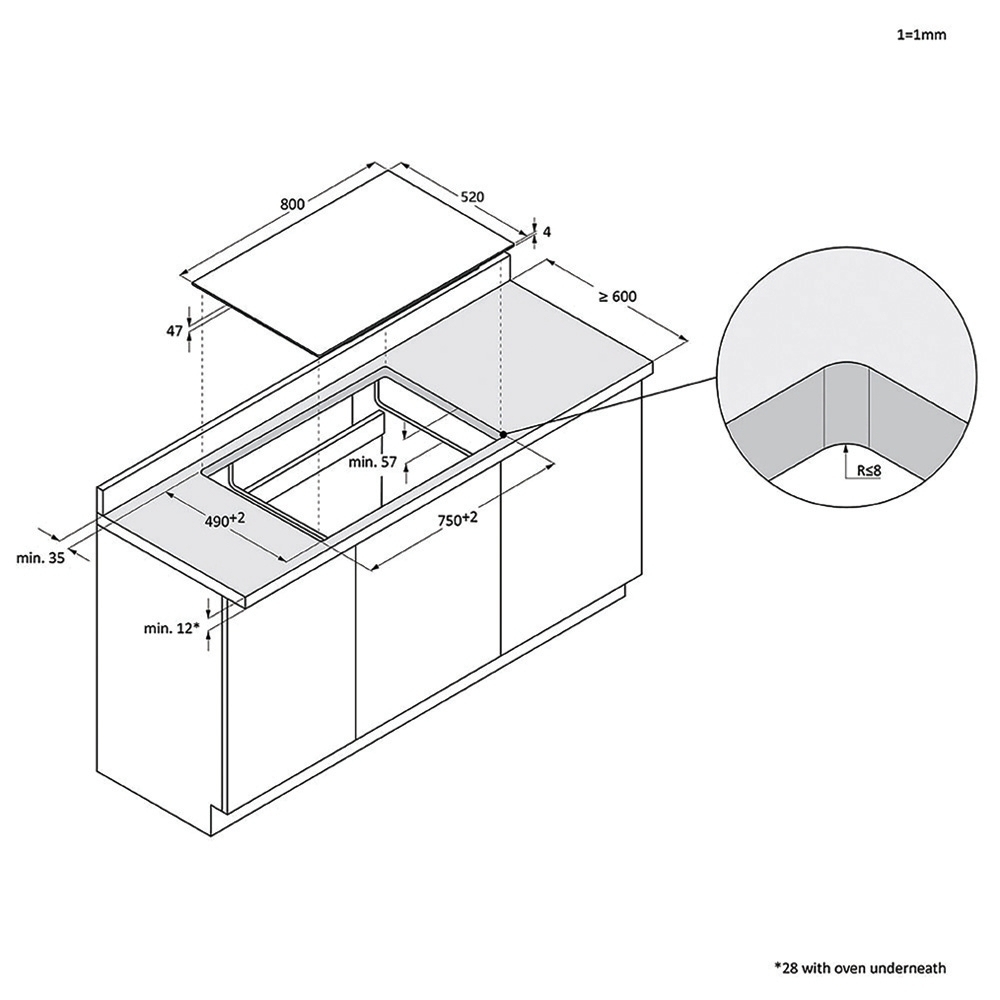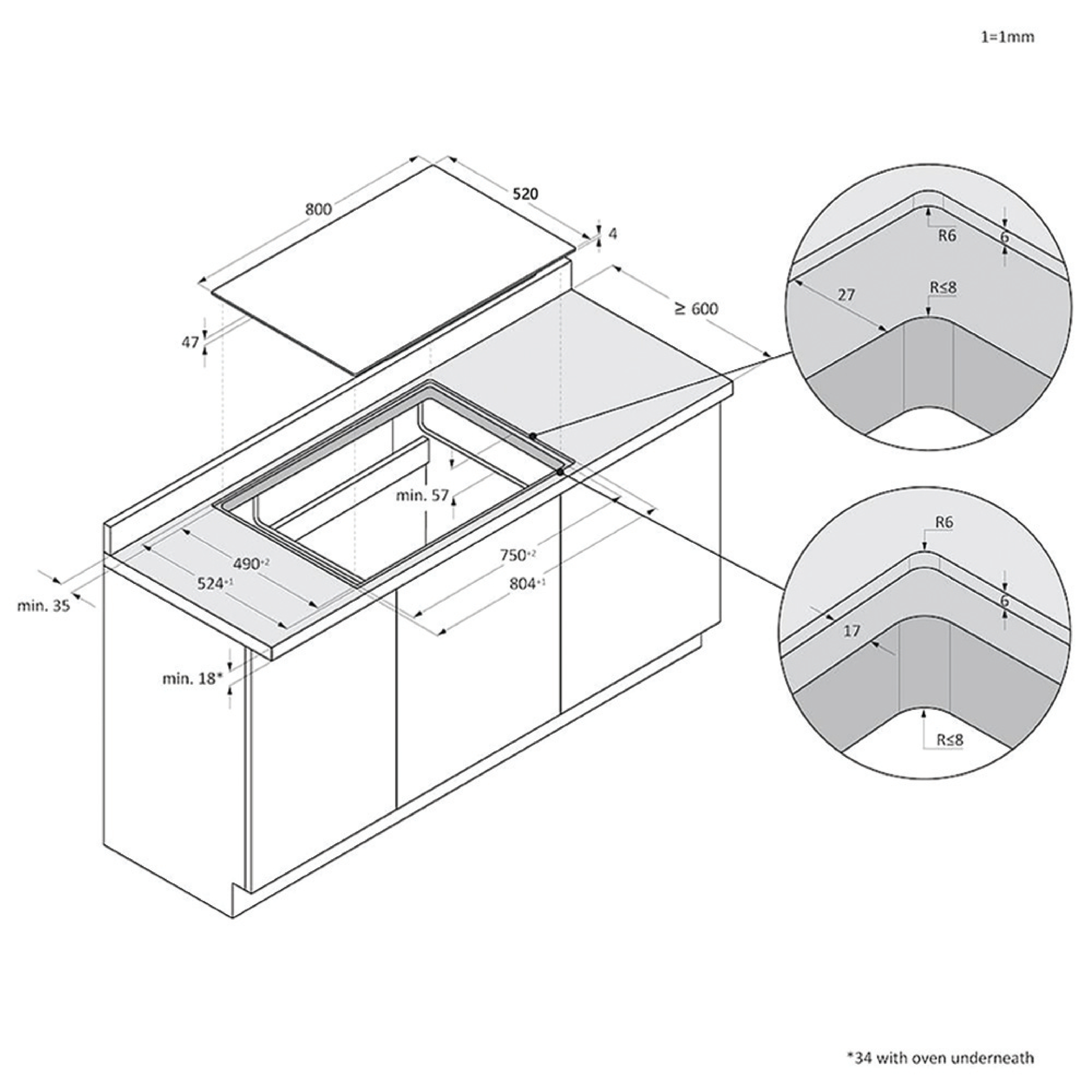 Installazione perfetta, senza l'utilizzo di silicone o materiali aggiuntivi grazie al fissaggio a molla, che facilita il fissaggio dei piani cottura nella posizione migliore. Inoltre, il perfetto allineamento è garantito dalla scatola a fondo sottile e dalla possibilità di installazione a filo.