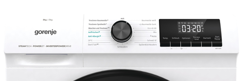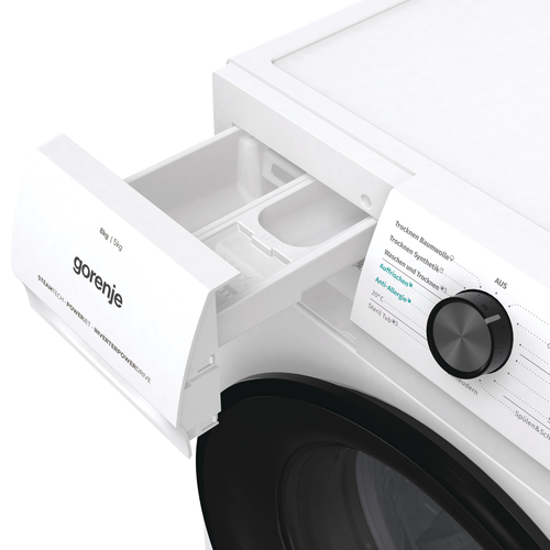 Gorenje WD8514PS. Tipo di carica: Caricamento frontale, Posizionamento dell'apparecchio: Libera installazione, Colore del prodotto: Bianco. Capacità di asciugatura: 5 kg, Velocità di centrifuga massima: 1400 Giri/min, Classe di efficienza della centrifuga: B. Angolo di apertura della porta: 140°. Classe di efficienza energetica (lavaggio): B, Classe di efficienza energetica( lavaggio e asciugatura): E, Consumo di acqua (lavaggio): 40 L. Profondità: 610 mm, Larghezza: 595 mm, Altezza: 845 mm