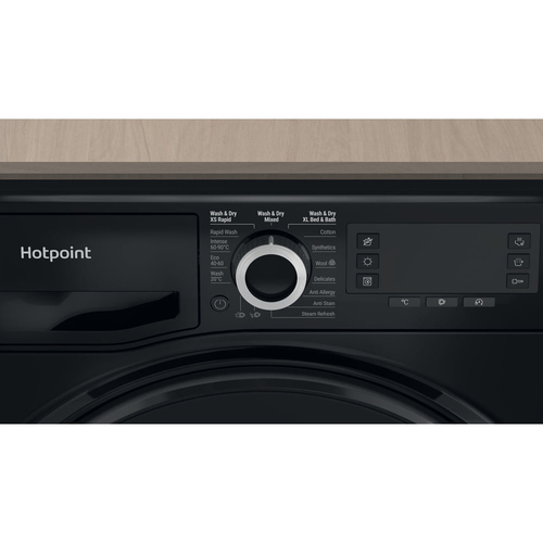 Hotpoint Ariston NDD 8636 BDA UK. Tipo di carica: Caricamento frontale, Posizionamento dell'apparecchio: Libera installazione, Colore del prodotto: Nero. Capacità di asciugatura: 6 kg, Velocità di centrifuga massima: 1400 Giri/min, Classe di efficienza della centrifuga: B. Lunghezza cavo: 1,2 m. Classe di efficienza energetica (lavaggio): A, Classe di efficienza energetica( lavaggio e asciugatura): D, Consumo di acqua (lavaggio): 48 L. Profondità: 540 mm, Larghezza: 595 mm, Altezza: 850 mm