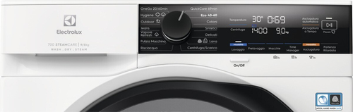 Electrolux EW7W495G Lavasciuga 700 SteamCare 9 kg. Tipo di carica: Caricamento frontale, Posizionamento dell'apparecchio: Libera installazione, Colore del prodotto: Bianco. Capacità di asciugatura: 5 kg, Velocità di centrifuga massima: 1400 Giri/min, Classe di efficienza della centrifuga: B. Classe di efficienza energetica (lavaggio): A, Classe di efficienza energetica( lavaggio e asciugatura): D, Consumo di acqua (lavaggio): 45 L. Profondità: 576 mm, Larghezza: 597 mm, Altezza: 847 mm