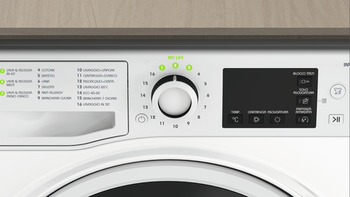 | Programmi di lavaggio | Freddo, Cotone, Delicati/Seta, Eco, Igiene/Allergy Care, Rapido, Risciacquo & centrifuga, Centrifuga/scarico, Vapore, Sintetico, Bianco |