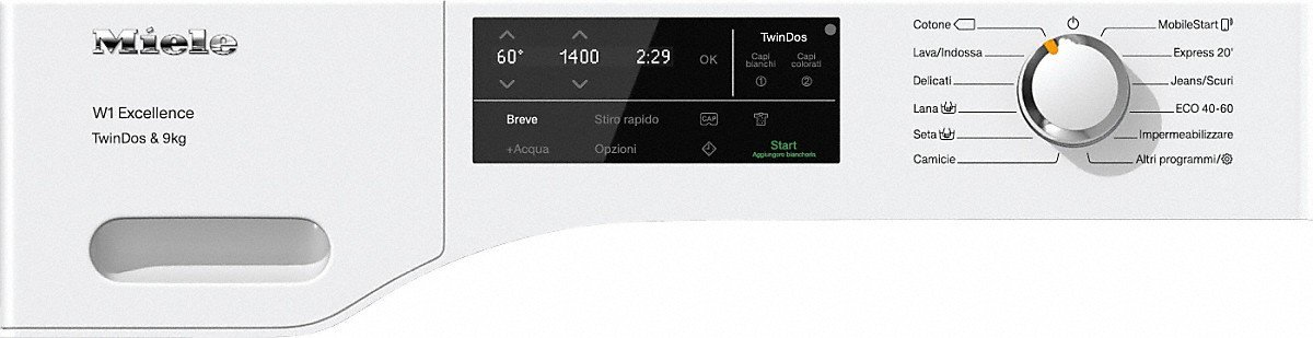 | Programmi di lavaggio | Camicia/maglietta, Cotone, Eco, Mano, Lana, Intenso, Jeans/denim, Rapido, Sport, Centrifuga/scarico, Delicati/Seta |
