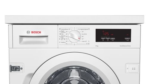 Bosch Serie 6 WIW24305ES. Tipo di carica: Caricamento frontale. Capacità cestello: 8 kg, Classe di efficienza della centrifuga: C, Silenziosità (centrifuga): 66 dB, Classe efficacia di lavaggio: A, Silenziosità (lavaggio): 41 dB, Velocità di centrifuga massima: 1200 Giri/min. Classe efficienza energetica: A+++, Consumo energetico annuale: 176 kWh, Consumo annuale di acqua: 11000 L. Colore del prodotto: Bianco. Larghezza: 596 mm, Profondità: 544 mm, Altezza: 818 mm