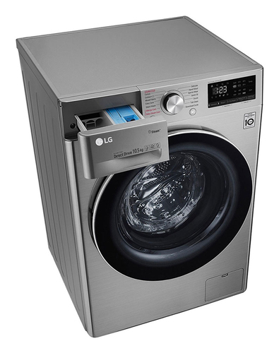 LG F4V5RYP2T. Tipo di carica: Caricamento frontale. Capacità cestello: 10500 kg, Classe di efficienza della centrifuga: A, Silenziosità (centrifuga): 71 dB, Silenziosità (lavaggio): 53 dB, Velocità di centrifuga massima: 1400 Giri/min. Classe efficienza energetica: A+++-40%, Consumo energetico annuale: 143 kWh, Consumo annuale di acqua: 9900 L. Colore del prodotto: Metallico. Larghezza: 600 mm, Profondità: 560 mm, Altezza: 850 mm