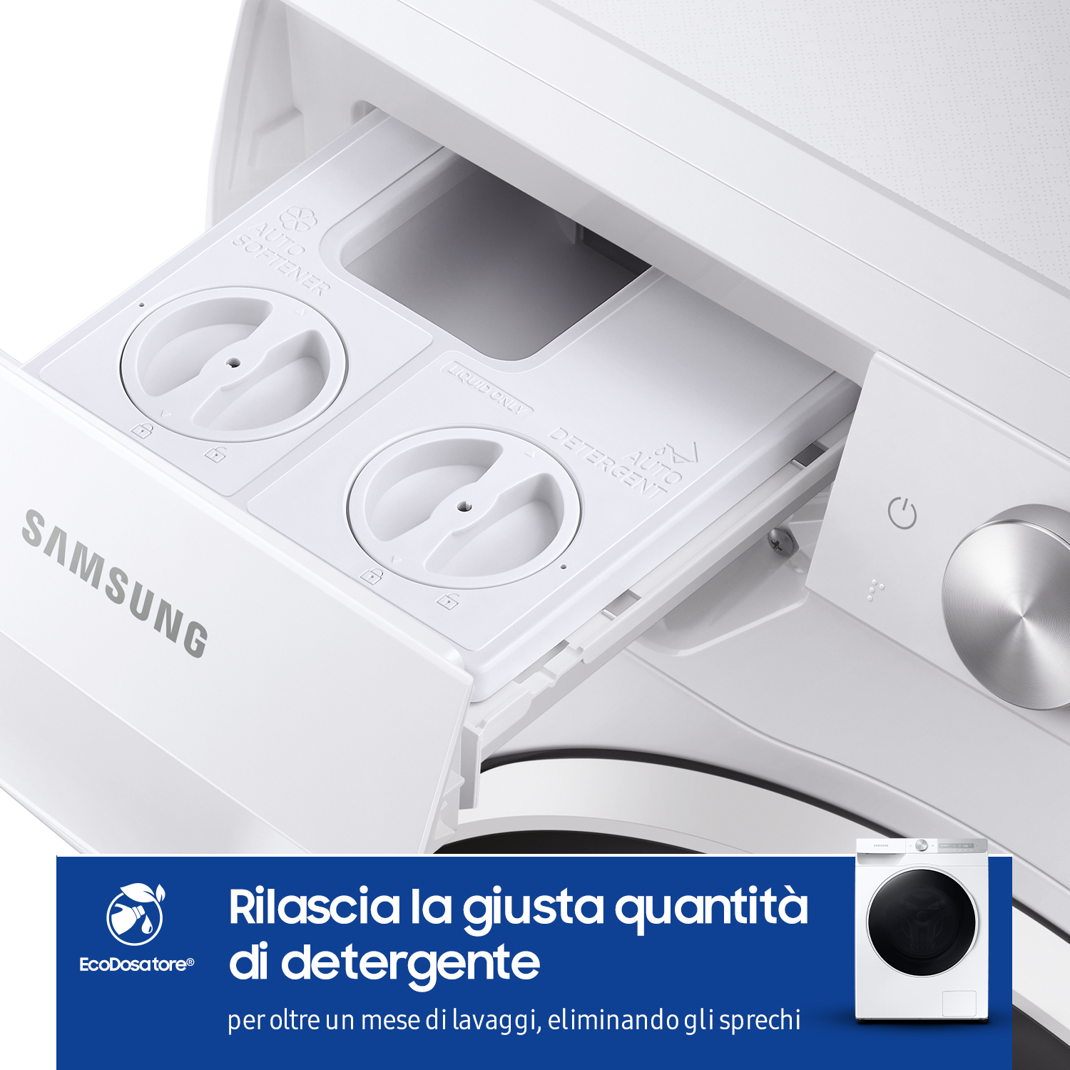 Ottieni risultati di lavaggio eccezionali, senza sprechi e fatica. Ecodosatore, grazie a un sistema integrato di sensori (Acqua, Peso e Detergente) calcola la quantità di detergente e ammorbidente su misura per ciascun carico. Riempi il dispenser ed ottieni fino a un mese di lavaggi in completa autonomia, dimenticandoti di riempire la vaschetta ad ogni ciclo di lavaggio.