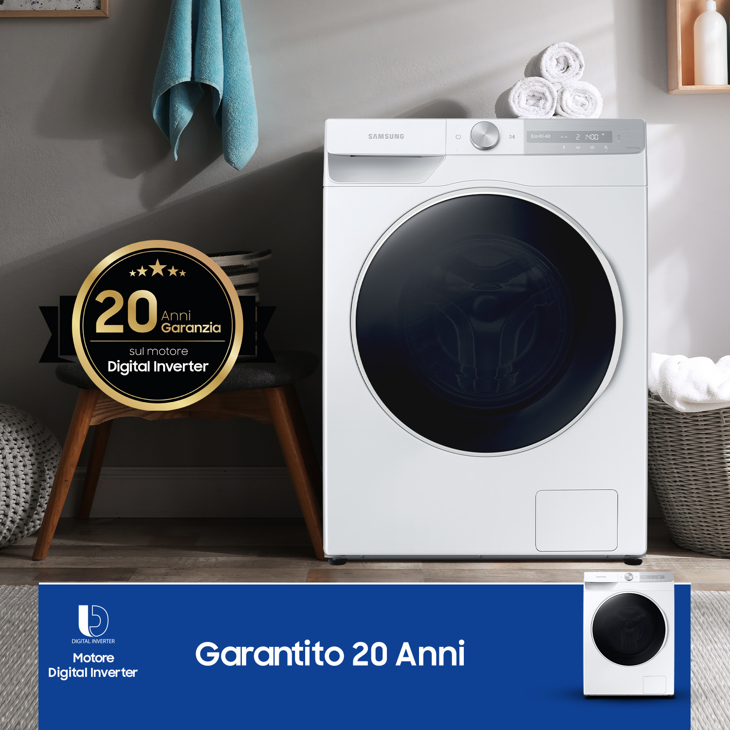 Il motore Digital Inverter sfrutta dei solidi magneti che consentono di ottenere i risultati desiderati in maniera più silenziosa ed efficace, consumando meno energia rispetto al motore tradizionale. Grazie all'eliminazione delle spazzole, assicura una durabilità eccellente supportata da una garanzia di 20 anni[7]