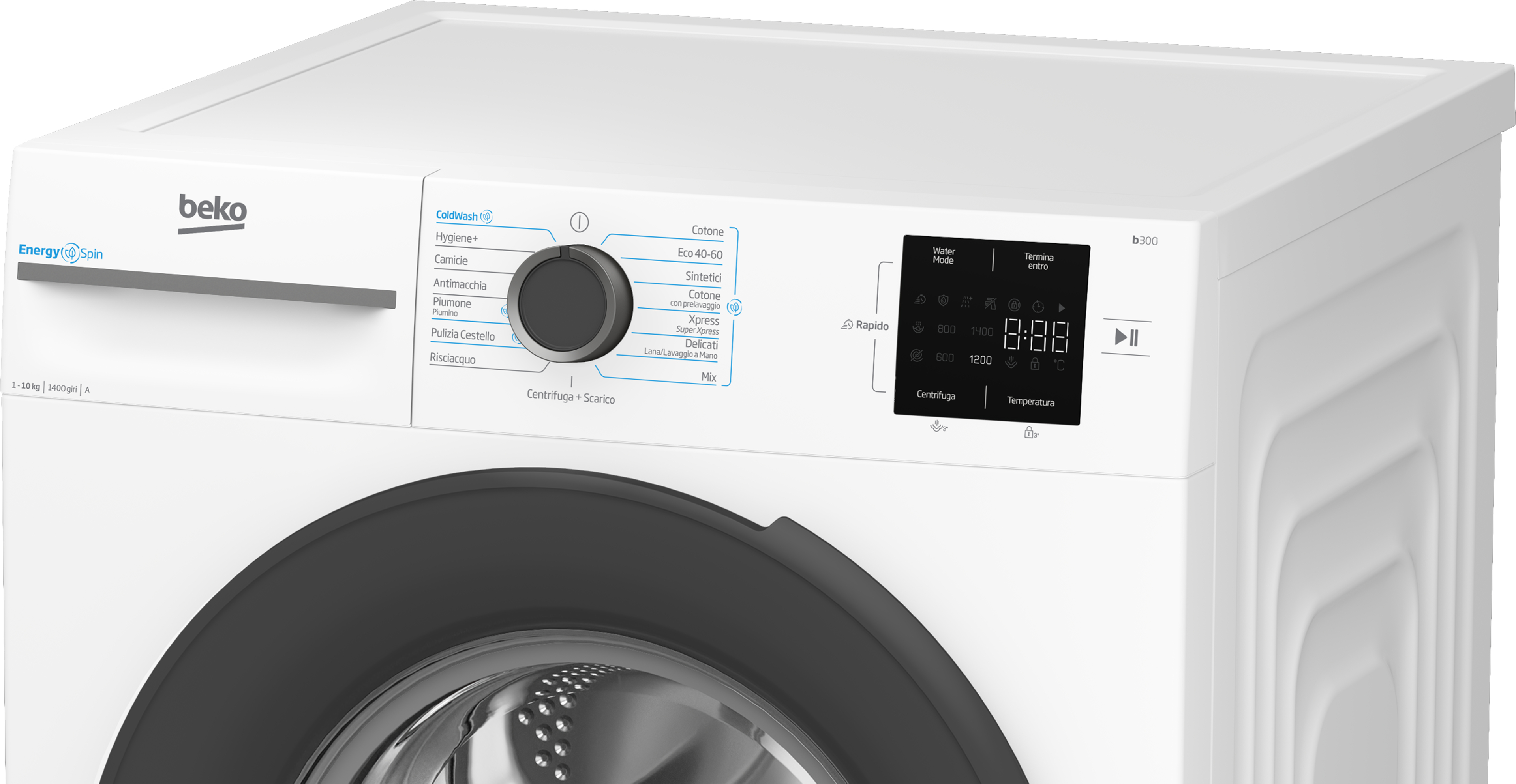 | Tecnologie Beko (cura dei vestiti) | Aquawave, EnergySpin, OptiSense, Tecnologia ProSmart™ Inverter Motor, SteamCure |