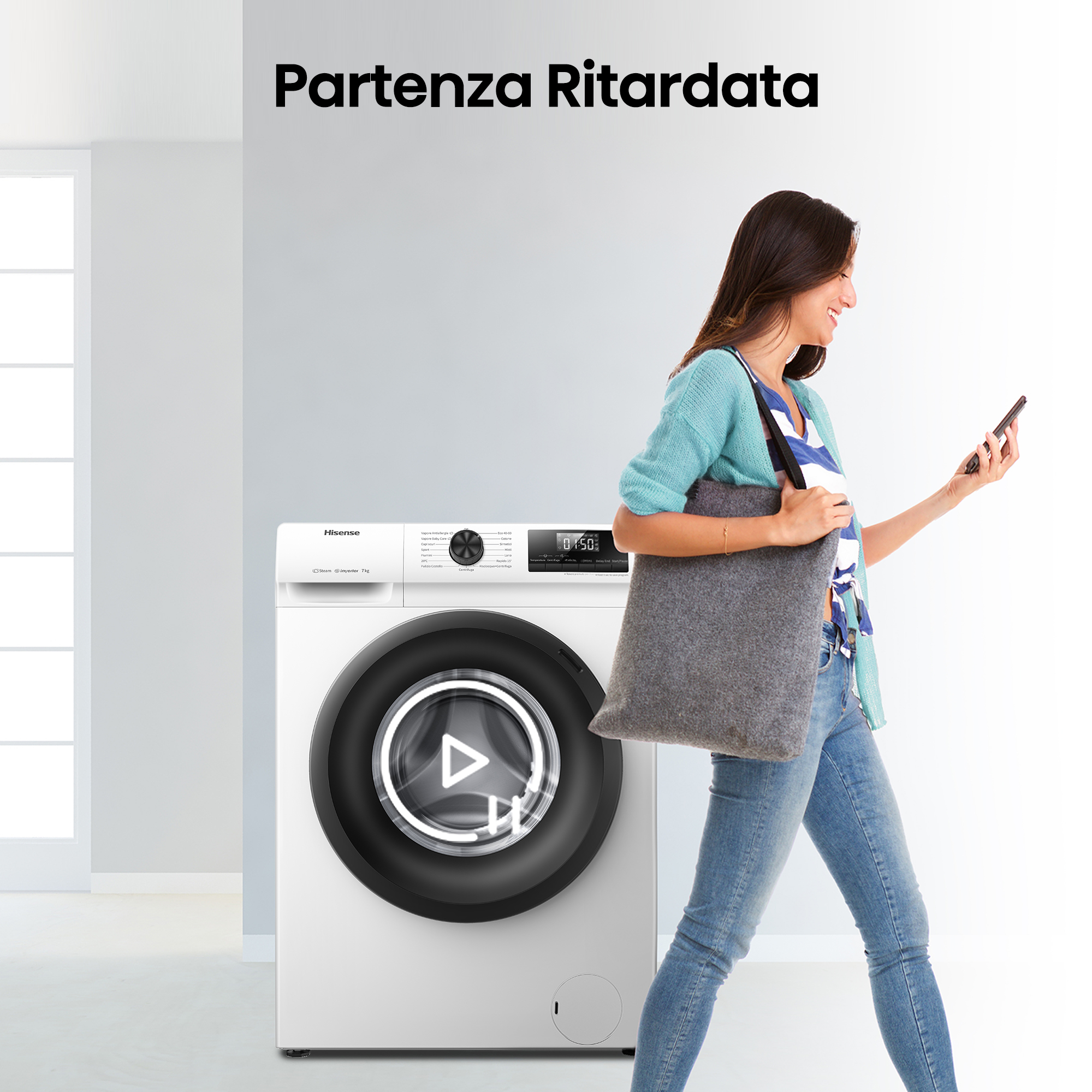 Hisense WFQP701219VM è una lavatrice a libera installazione con capienza 7 Kg. La lavatrice Hisense unisce efficienza energetica Classe A e tecnologia Inverter per lavaggi potenti, silenziosi e a basso consumo. Il programma a vapore igienizza in profondità, eliminando allergeni e pieghe dai tessuti, mentre la funzione Quick Wash consente cicli rapidi per capi sempre freschi anche quando hai poco tempo. Design elegante, comandi intuitivi e risultati impeccabili per un bucato sempre perfetto.