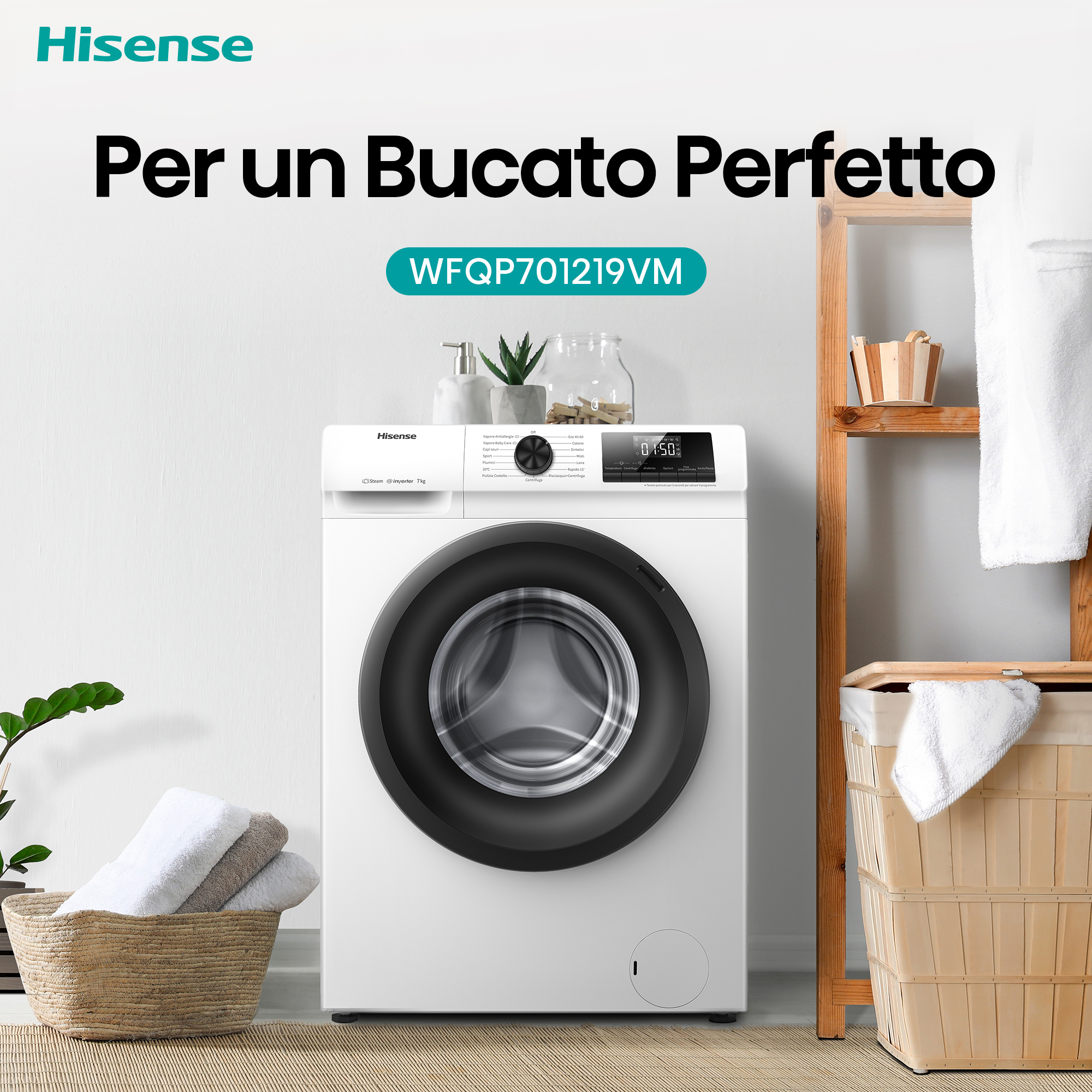 Hisense lavatrice WFQP701219VM 7 Kg Classe A Vapore Quick Wash Inverter