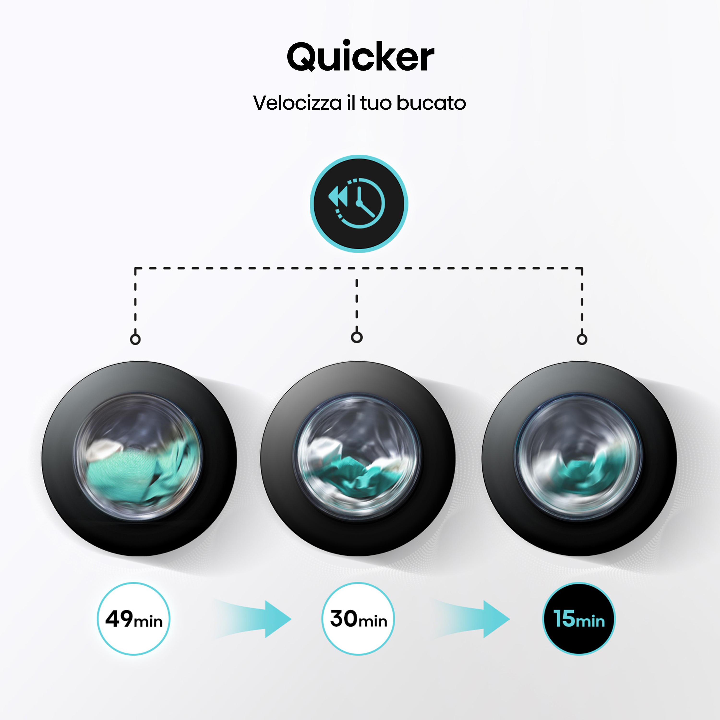 •Lavaggio rapido: Il programma Quick Wash riduce drasticamente i tempi di attesa ed è ideale per piccoli capi di bucato leggermente usurati. Lava fino a 1 kg di bucato in soli 15 minuti; è più o meno lo stesso tempo che ti serve per fare la doccia o preparare la colazione.