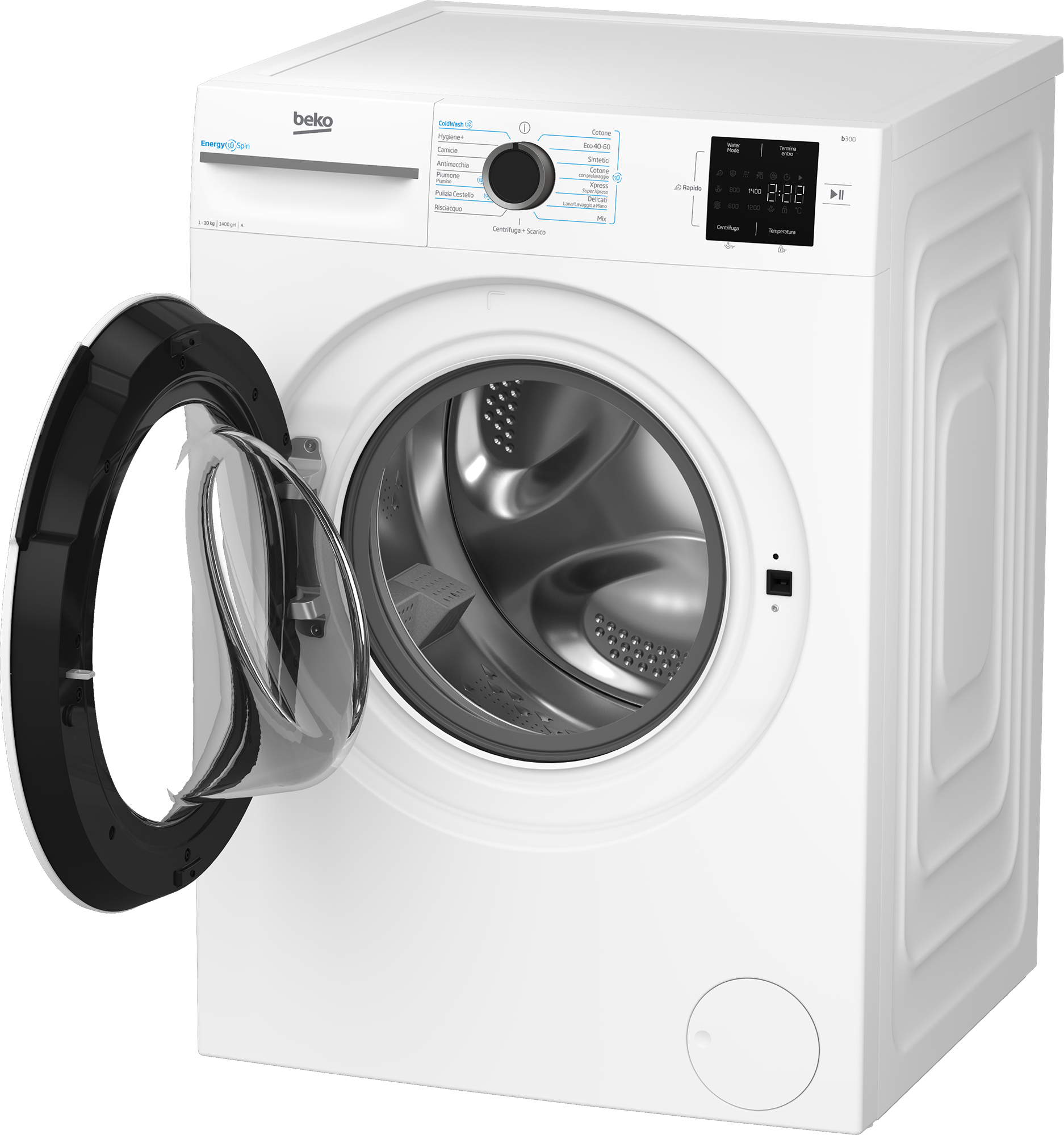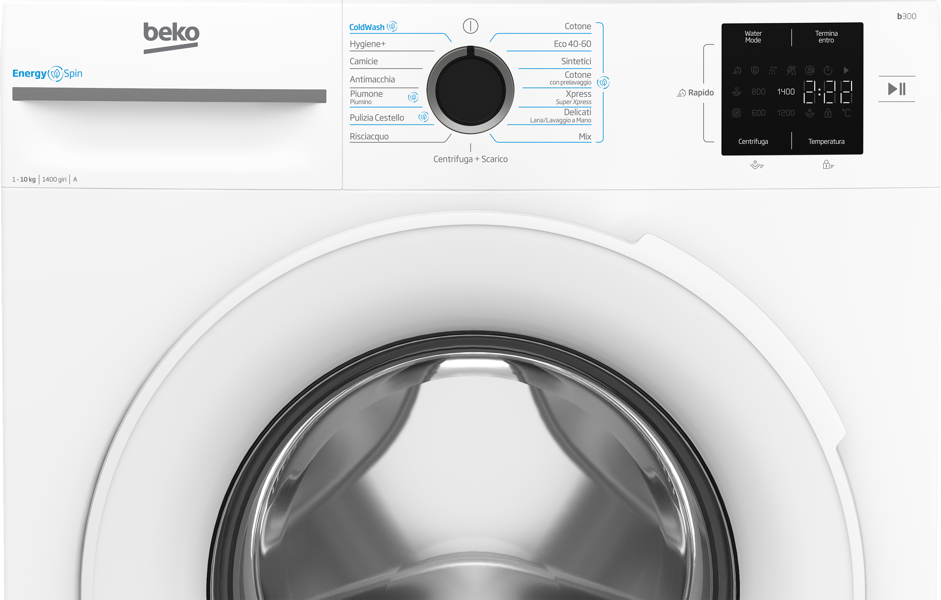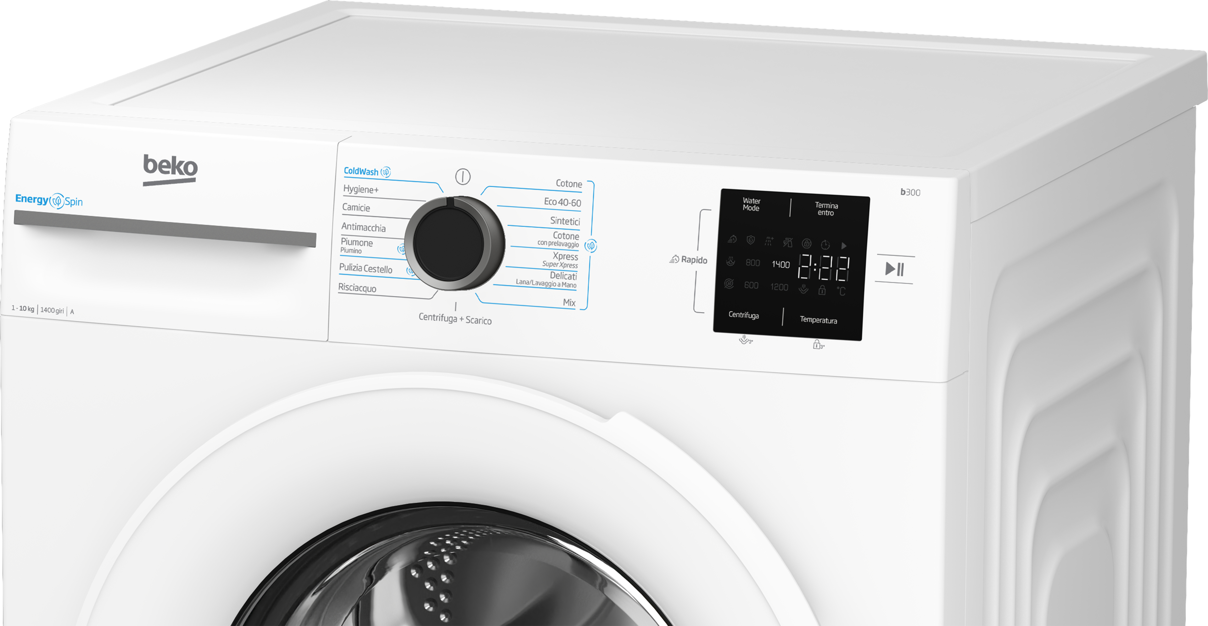Beko b300 BMW10147EW: Lavatrice 10kg, classe A-10%, 1400giri, linea estetica NX, motore inverter, Display Touch, colore Bianco, oblò Bianco, tecnologia EnergySpin™, funzione a vapore