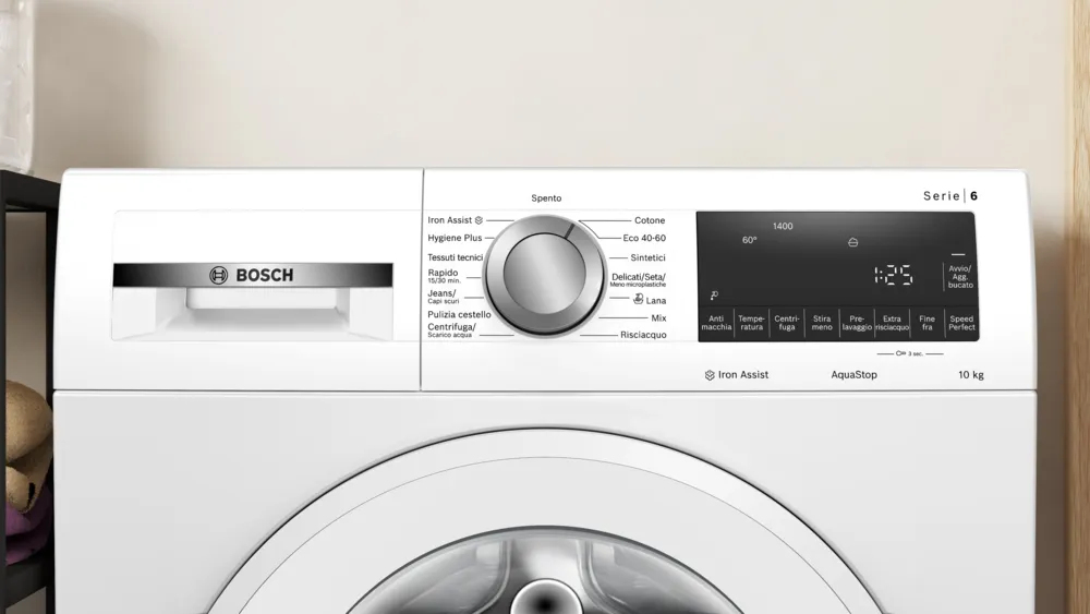 Un elettrodomestico ad alta efficienza energetica consente di risparmiare. Per questo è importante considerare la classe di efficienza energetica quando si sceglie l'elettrodomestico da acquistare. L'etichetta energetica indica la classe di efficienza (da A a G), il livello di rumorosità, la capacità e il consumo di energia e acqua. Grazie al sistema di risparmio energetico ad alta efficienza, le lavatrici Bosch raggiungono la migliore classe energetica A, senza compromessi sui risultati.