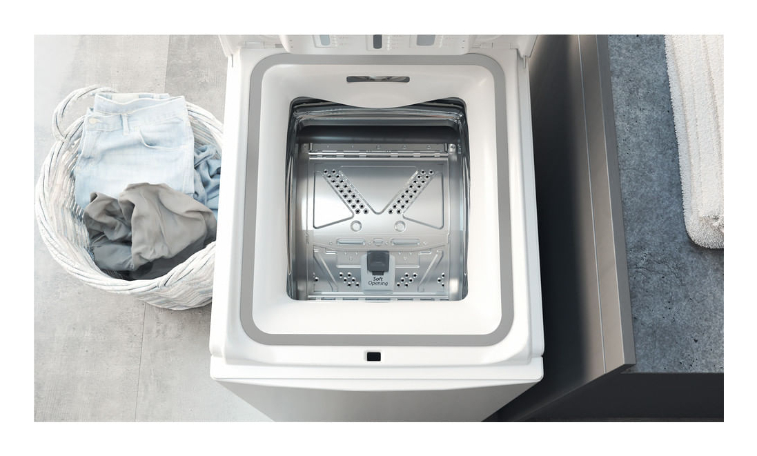 L'apertura del cestello grazie ad un movimento delicato rende le operazioni di carico e scarico ancora più comode.