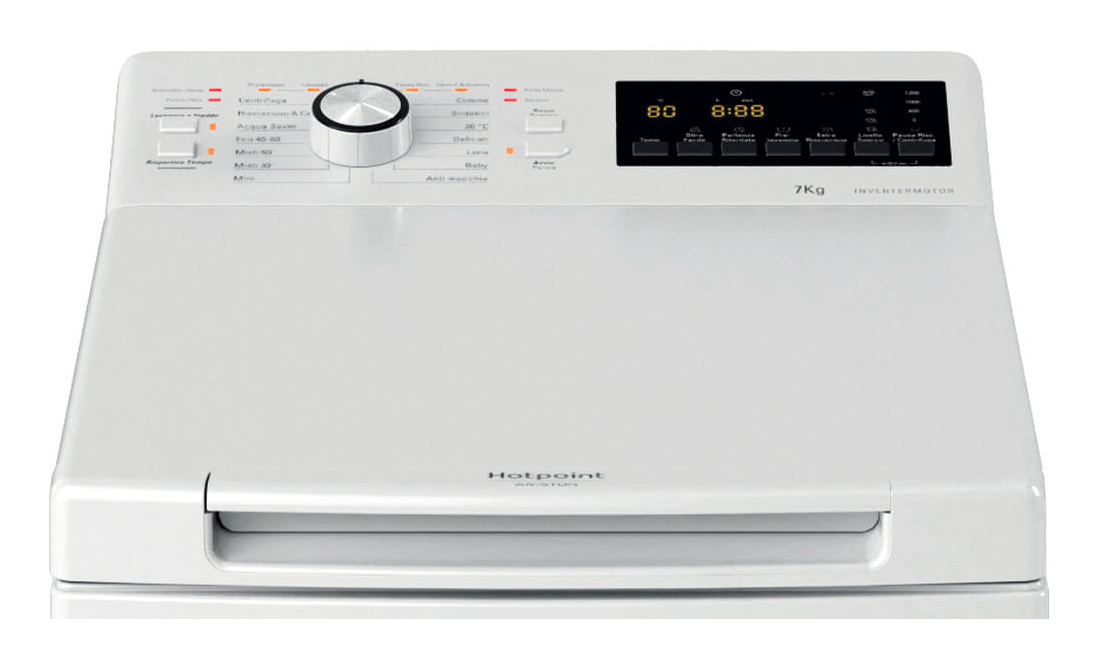 Caratteristiche di questa lavatrice a carica dall'alto a libera installazione Hotpoint Ariston: modello slim, la soluzione perfetta per piccoli spazi. Cestello extra-spazioso e ampio da 7,0 kg. Classe energetica B. Centrifuga a 1200 giri al minuto, rapida ed efficiente. Colore bianco.