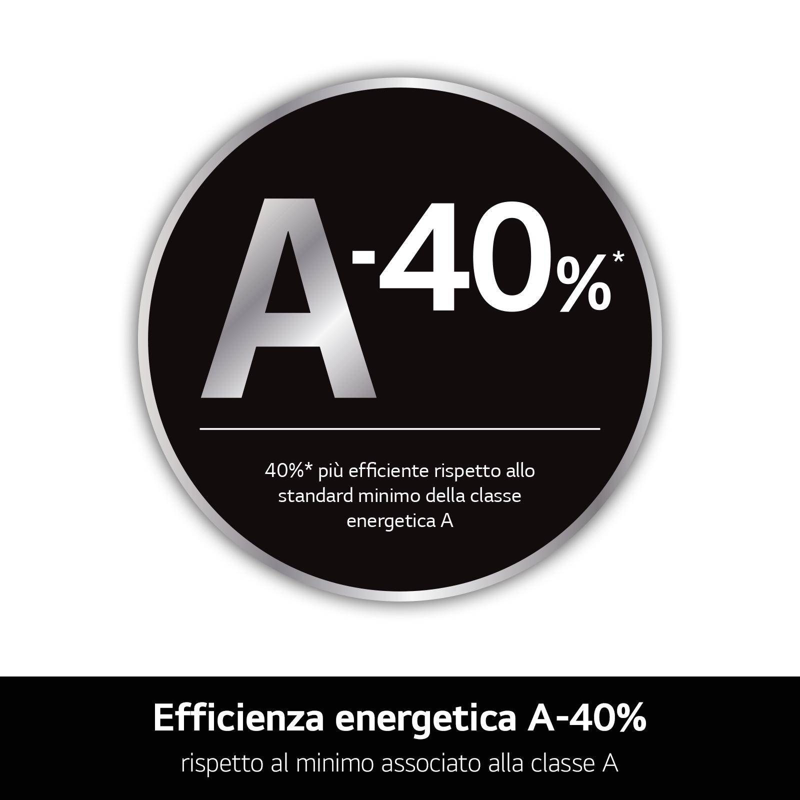 *Il 40% più basso dell'indice di efficienza energetica rispetto allo standard minimo associato alla classe di efficienza energetica A per le lavatrici