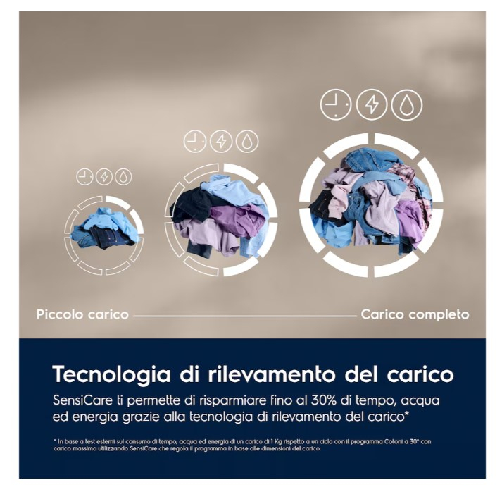 SensiCare è la tecnologia che rileva le dimensioni del carico e regola il programma per risparmiare fino al