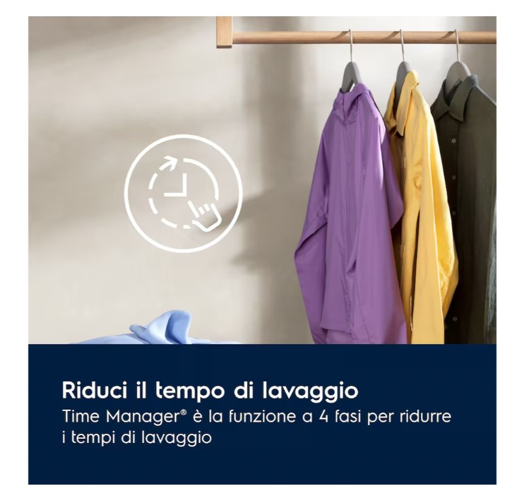 Non lavare più del necessario. Lava i tuoi capi con la funzione regolabile a 4 fasi Time Manager® per ridurre la durata del ciclo di lavaggio.
