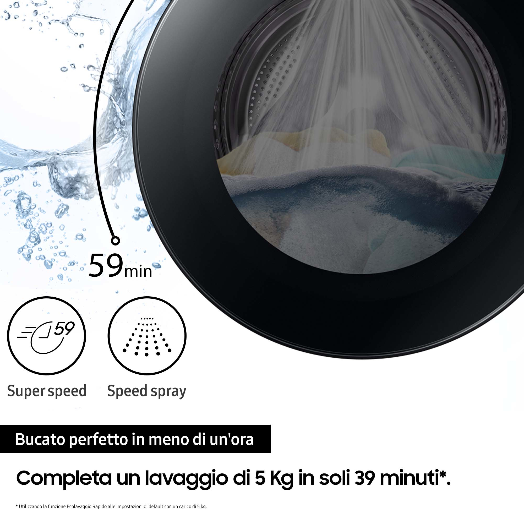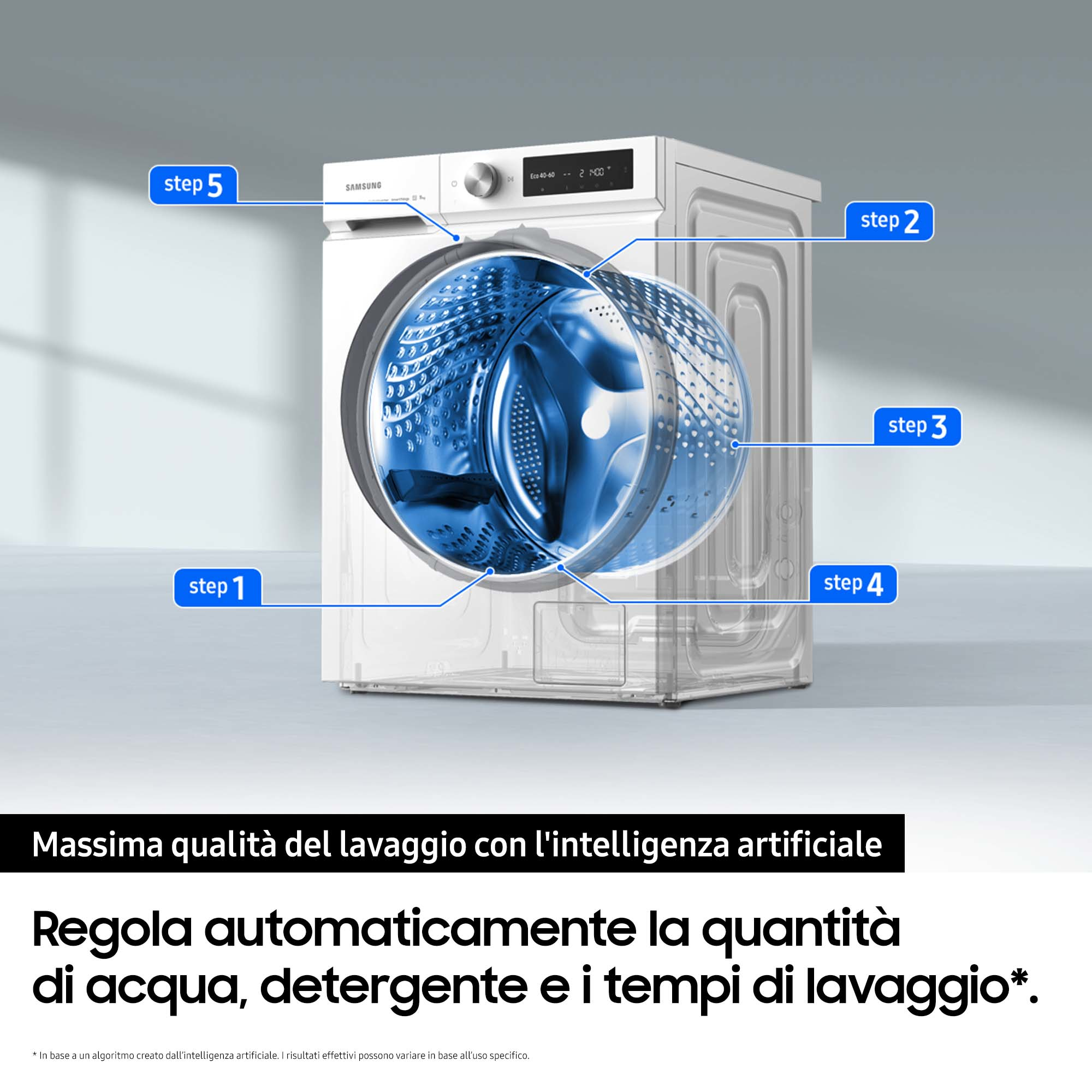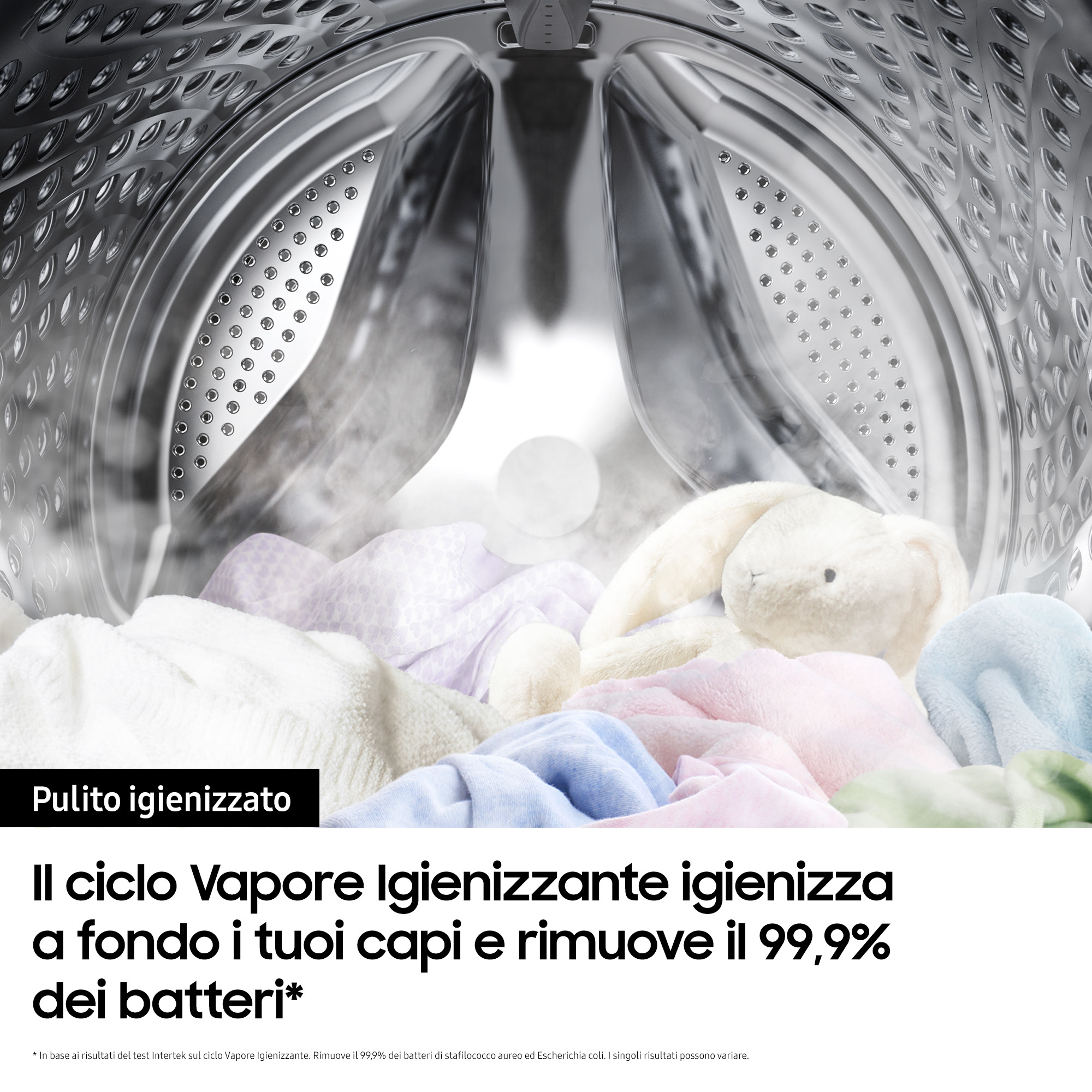 | Programmi di lavaggio | Cura del bambino, Biancheria da letto, Camicia/maglietta, Cotone, Delicati/Seta, Eco, Intenso, Jeans/denim, Prelavaggio, Rapido, Risciacquo & centrifuga, Centrifuga/scarico, Vapore, Sintetico, Asciugamano, Lana |