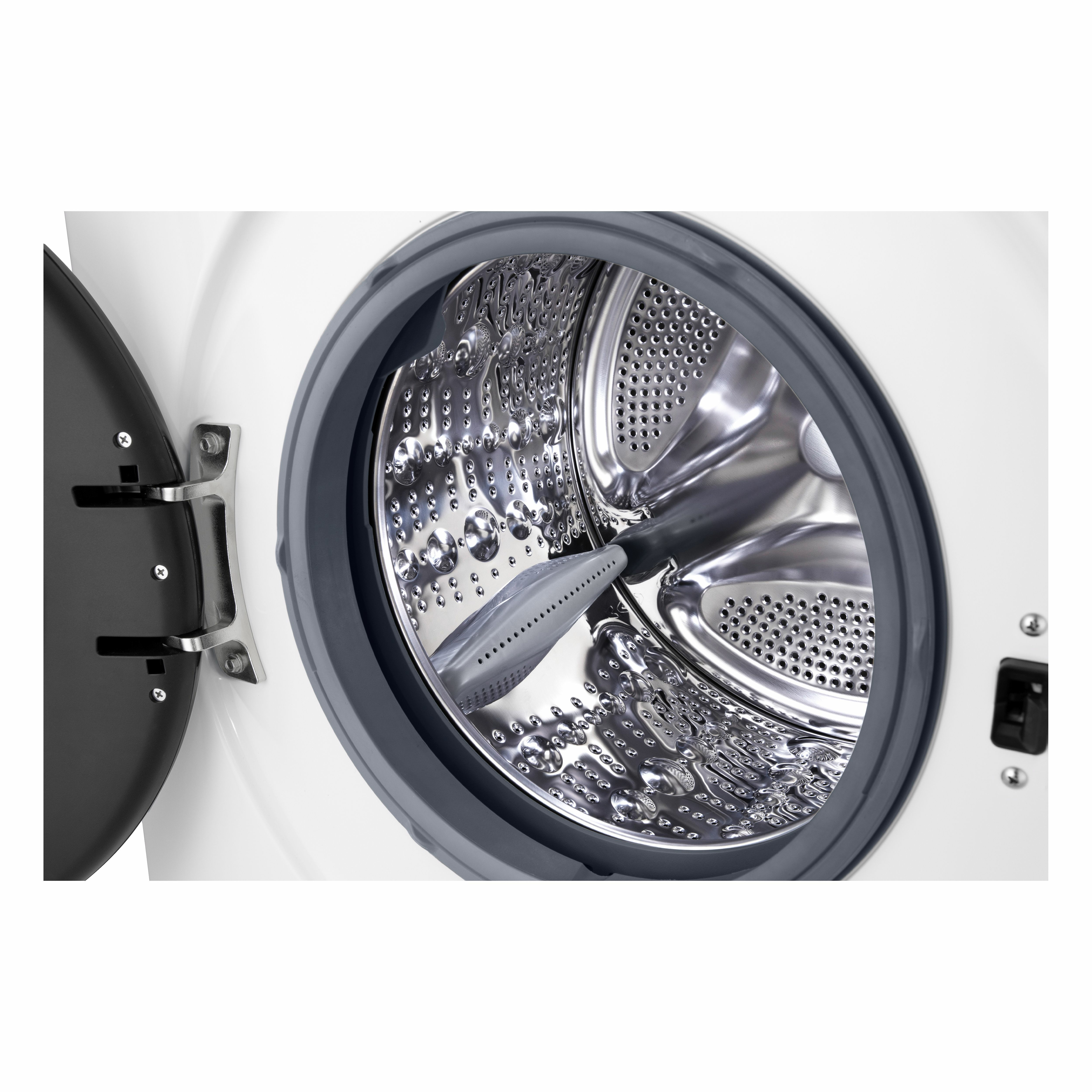 LG F4NX1009NWB Lavatrice smart 9kg, Classe A, 1400 giri, 6 Motion, Allergy Care, Bianca. Tipo di carica: Caricamento frontale. Capacità cestello: 9 kg, Classe di efficienza della centrifuga: B, Silenziosità (centrifuga): 75 dB, Velocità di centrifuga massima: 1400 Giri/min. Colore del prodotto: Bianco. Larghezza: 600 mm, Profondità: 550 mm, Altezza: 850 mm. Classe efficienza energetica: A