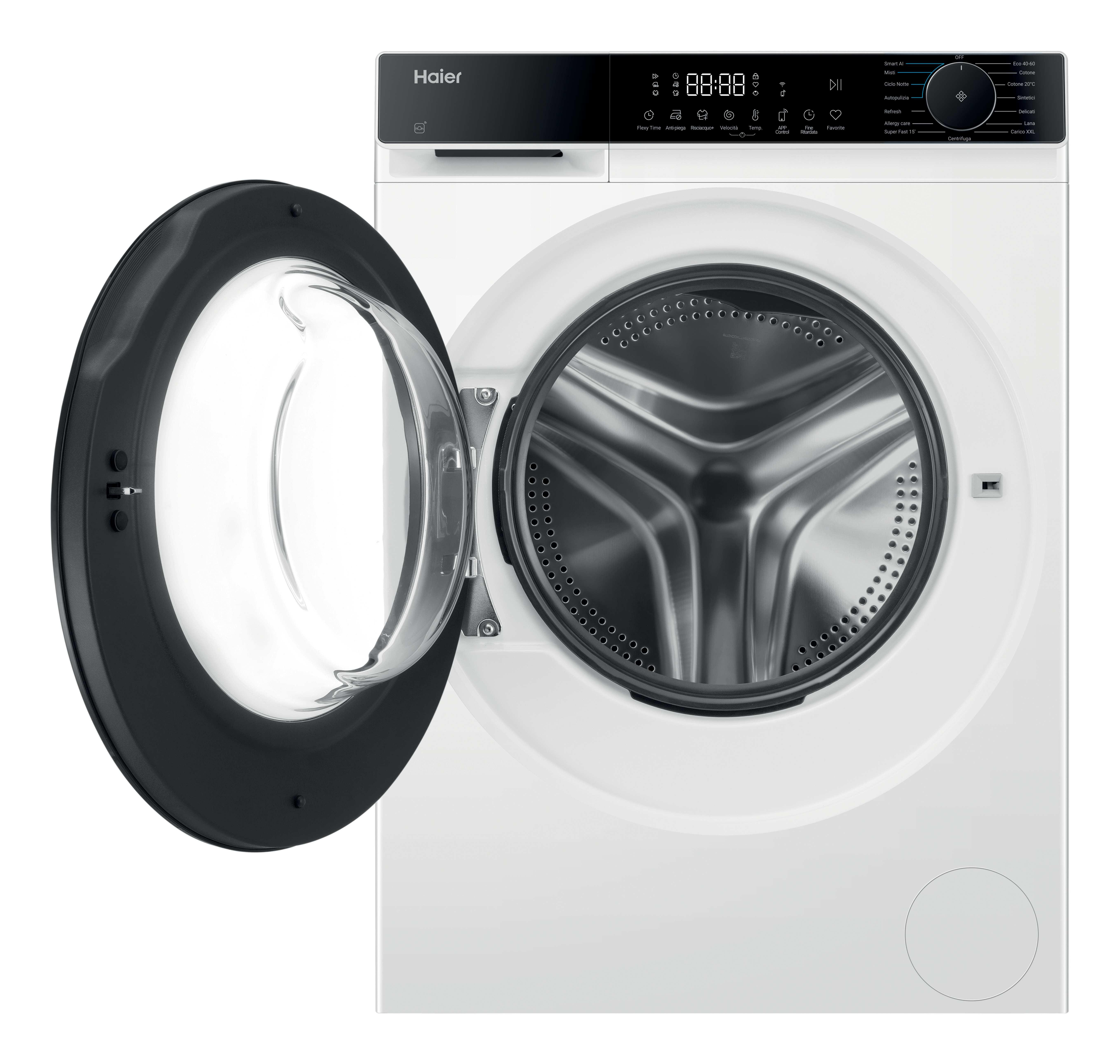 | Programmi di lavaggio | Cotone, Sintetico, Lana, Delicati/Seta, Mix, Silent, AI intelligente, Quick 15min, A tamburo, Piumino/piumone, Cotone 20 °C, Eco 40-60°C, Ricambio dell'aria a scopo igienico, Vapore |
