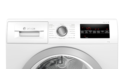 Bosch Serie 6 WTG86401PL. Posizionamento dell'apparecchio: Libera installazione, Tipo di carica: Caricamento frontale, Sistema di asciugatura: Condensa. Capacità cestello: 8 kg, Classe di efficienza della condensazione: B, Programmi di asciugatura: Auto, Lana, Mix, Sport, Programmato, Rapido, Delicati/Seta, Camicia/maglietta, Cotone. Partenza ritardata: 24 h. Classe efficienza energetica: B, Consumo energetico: 4,63 kWh, Consumo energetico annuo: 561 kWh. Profondità: 599 mm, Larghezza: 598 mm, Altezza: 842 mm