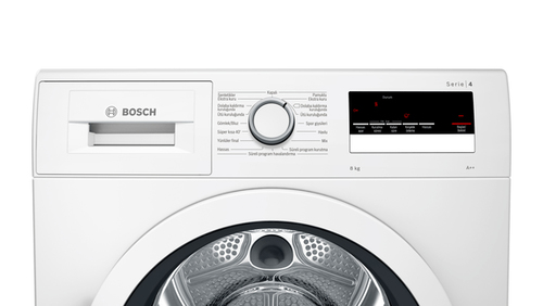 Bosch Serie 4 WTR85V00TR. Posizionamento dell'apparecchio: Libera installazione, Tipo di carica: Caricamento frontale, Sistema di asciugatura: Pompa di calore. Capacità cestello: 8 kg, Emissione acustica: 65 dB. Profondità: 599 mm, Larghezza: 598 mm, Altezza: 842 mm. Classe di efficienza energetica (vecchia): A++
