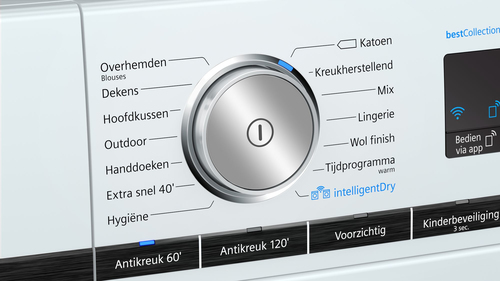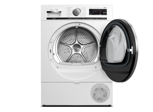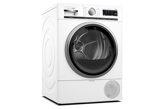 Siemens iQ700 WT8HXM75NL. Posizionamento dell'apparecchio: Libera installazione, Tipo di carica: Caricamento frontale, Sistema di asciugatura: Pompa di calore. Capacità cestello: 9 kg, Classe di efficienza della condensazione: B, Programmi di asciugatura: Mix, Rapido, Delicati/Seta, Microfibra, Camicia/maglietta, Biancheria intima, Cotone, Asciugamano,.... Partenza ritardata: 24 h. Classe efficienza energetica: A+++, Consumo energetico: 1,61 kWh, Consumo energetico annuo: 193 kWh. Profondità: 599 mm, Larghezza: 598 mm, Altezza: 842 mm