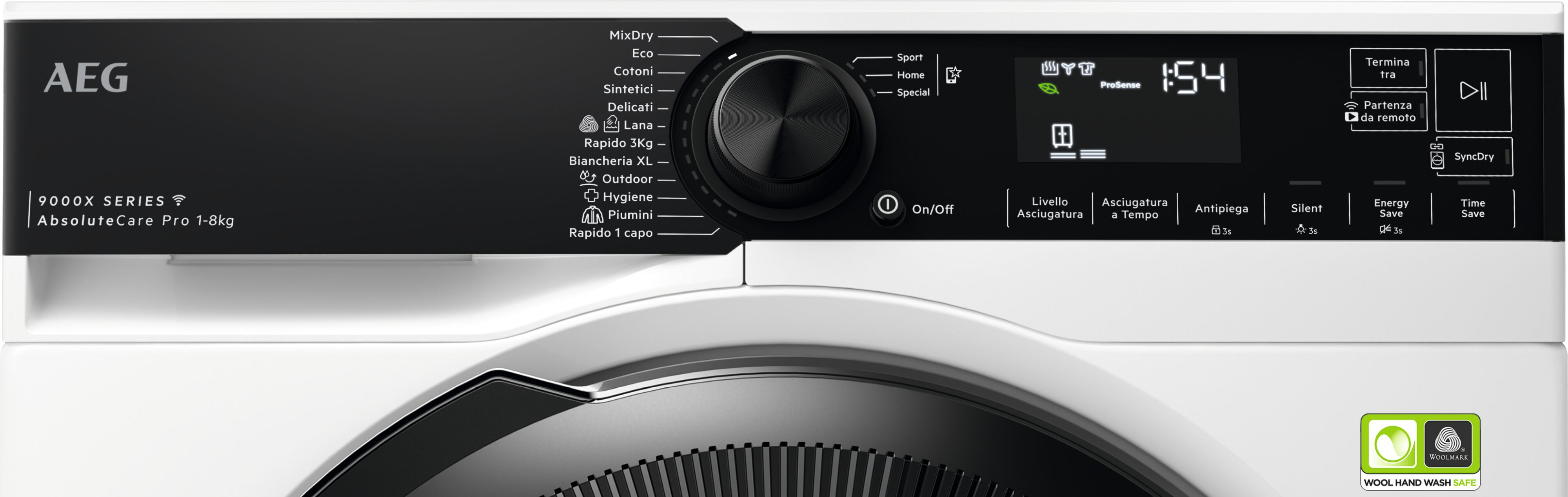 | Tecnologie AEG (cura dei vestiti) | AbsoluteCare®, Green Woolmark, MixDry |