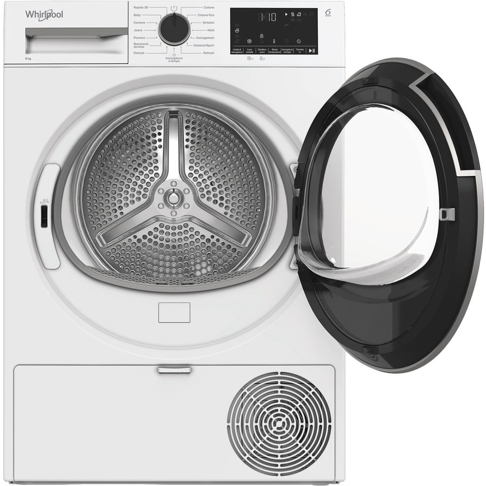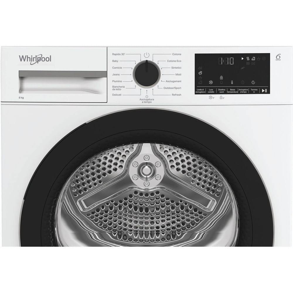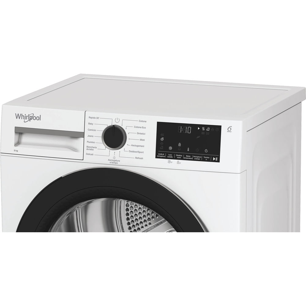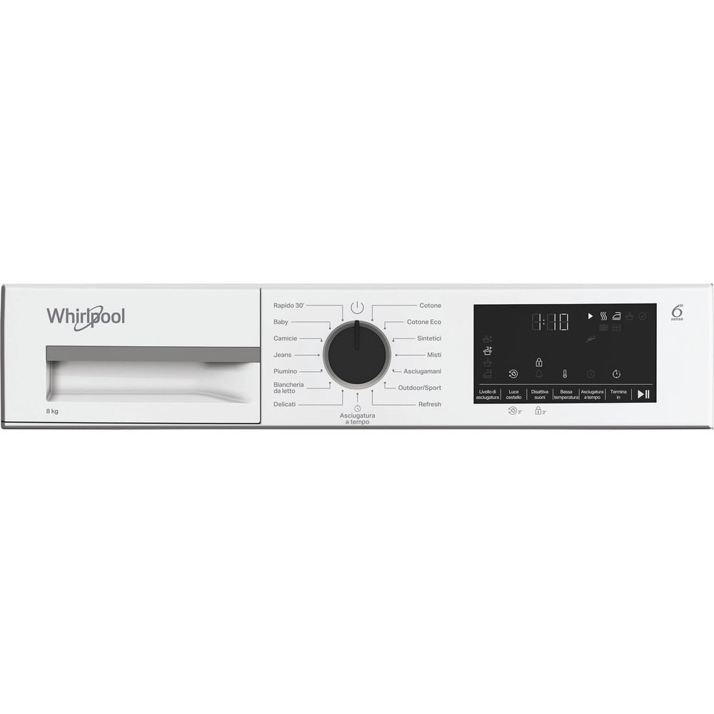 Caratteristiche di questa asciugatrice a libera installazione Whirlpool: cestello spazioso da 8,0 kg. Esclusiva tecnologia 6° SENSO che monitora costantemente il livello di umidità nel tamburo per proteggere i tuoi vestiti e garantire un'asciugatura perfetta. Tecnologia a pompa di calore riscalda efficacemente l’aria nell'elettrodomestico, riducendo significativamente il consumo energetico.