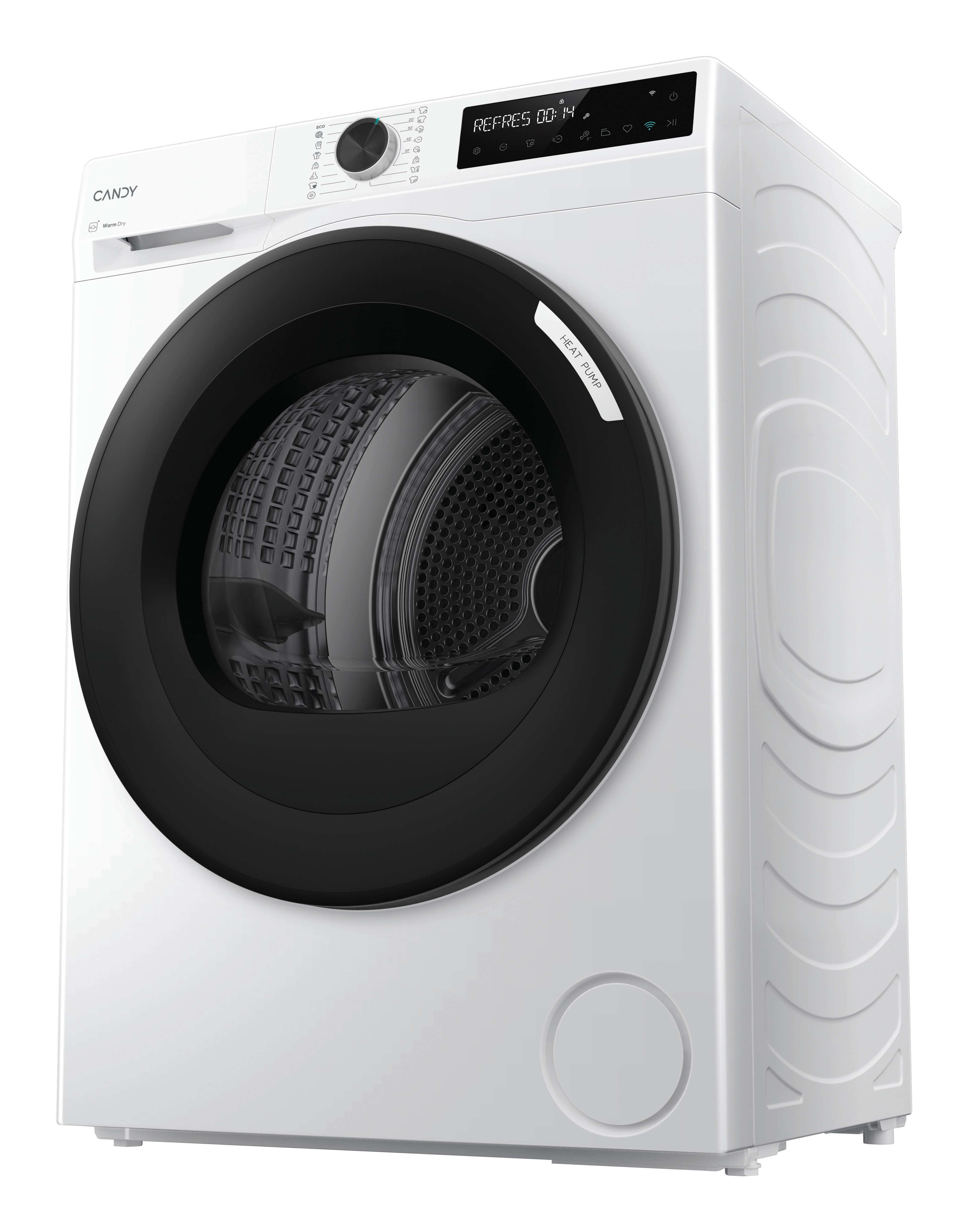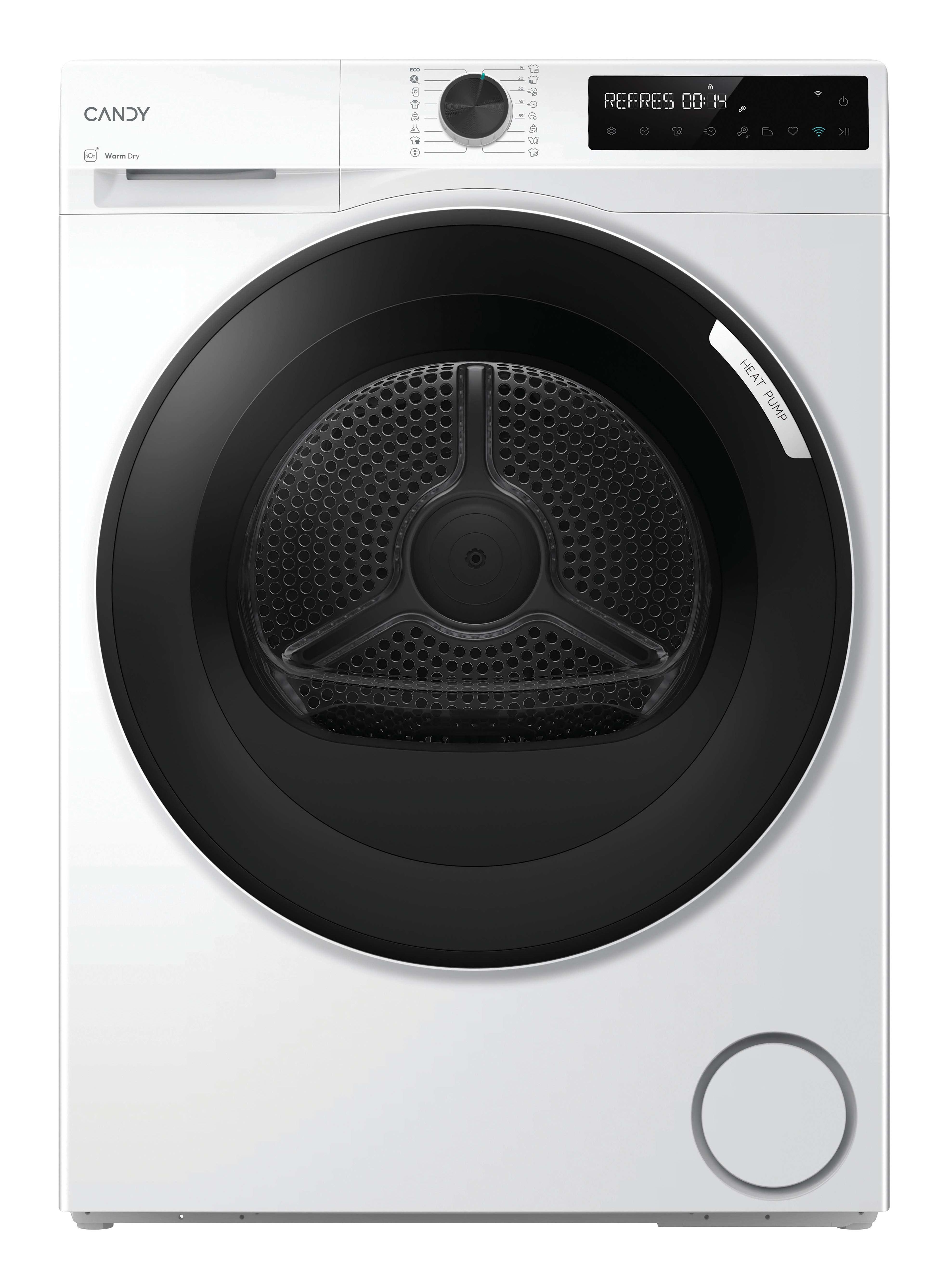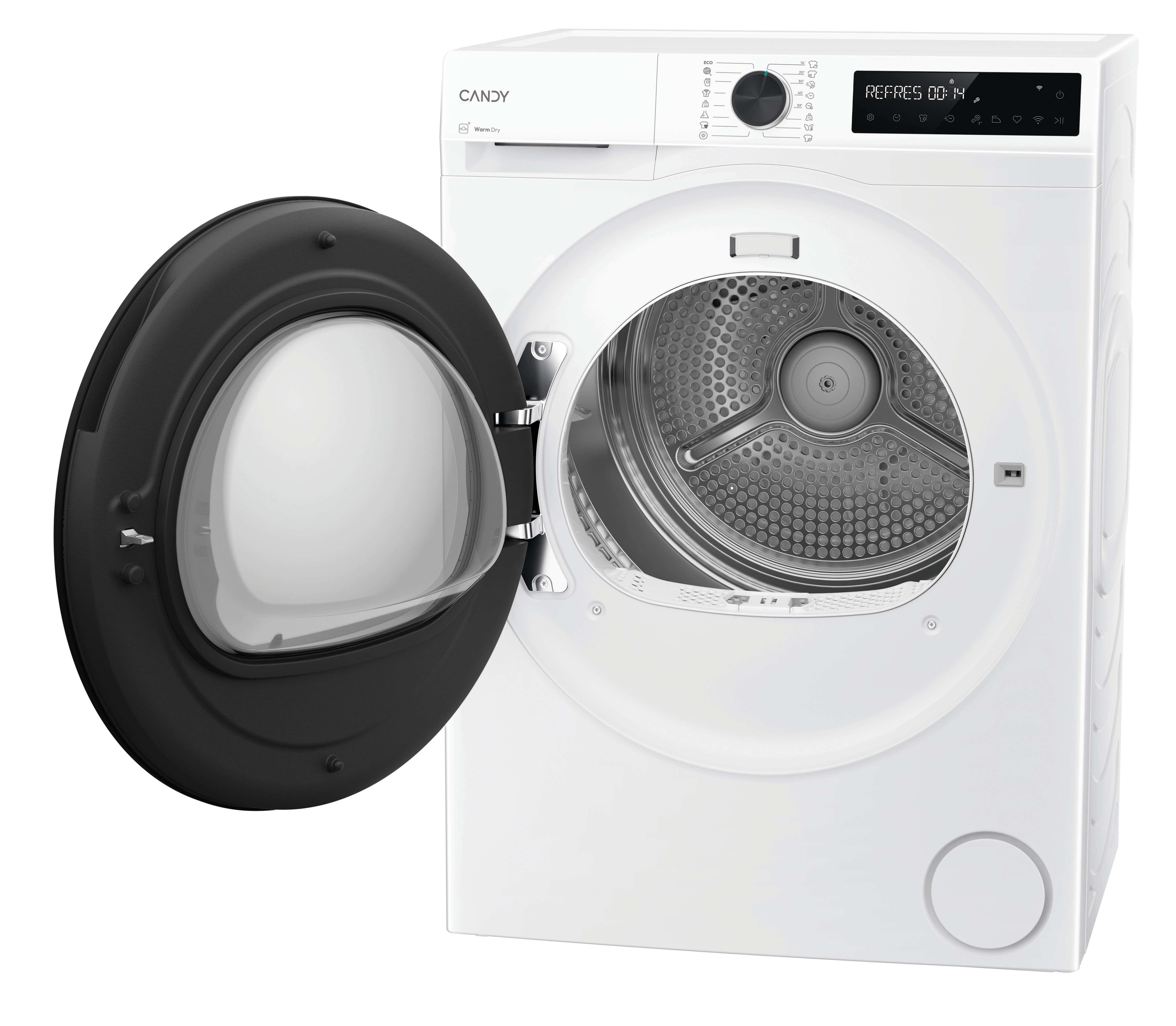 Candy BRS 8N2BX-S. Posizionamento dell'apparecchio: Libera installazione, Tipo di carica: Caricamento frontale, Sistema di asciugatura: Pompa di calore. Capacità cestello: 8 kg, Classe di efficienza della condensazione: B, Programmi di asciugatura: A colori, Quotidiano, Eco, Hygienic drying, Jeans/denim, Rapido, Rapido 14min, Refresh, Shirts,.... Partenza ritardata: 24 h, Applicazioni per il controllo supportate: hOn, Funzioni delle app: Diagnostica remota, Monitoraggio remoto, Avvio a distanza. Classe efficienza energetica: D, Consumo energetico per 100 cicli: 119 kWh, Consumo energetico: 1,19 kWh. Profondità: 544 mm, Larghezza: 595 mm, Altezza: 845 mm
