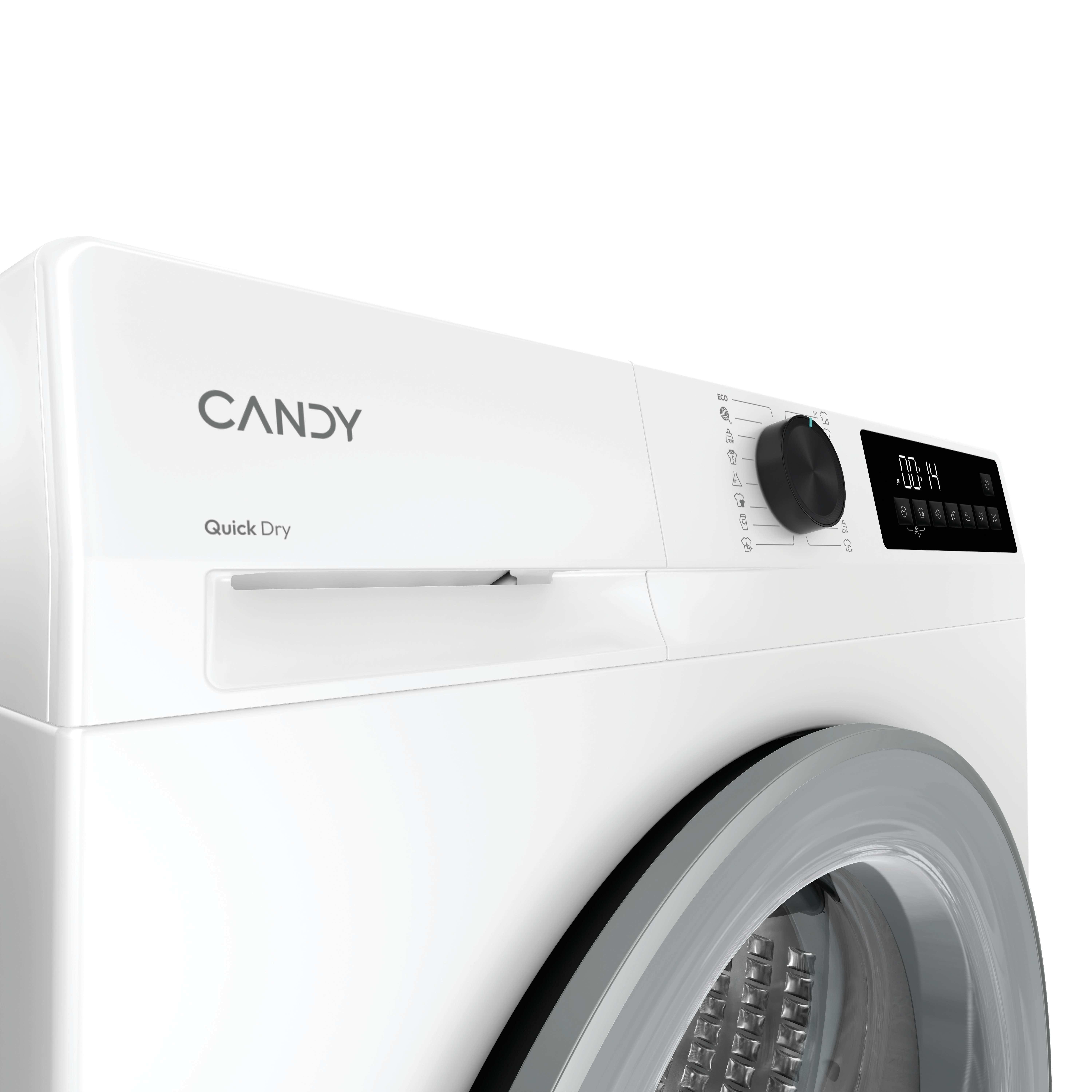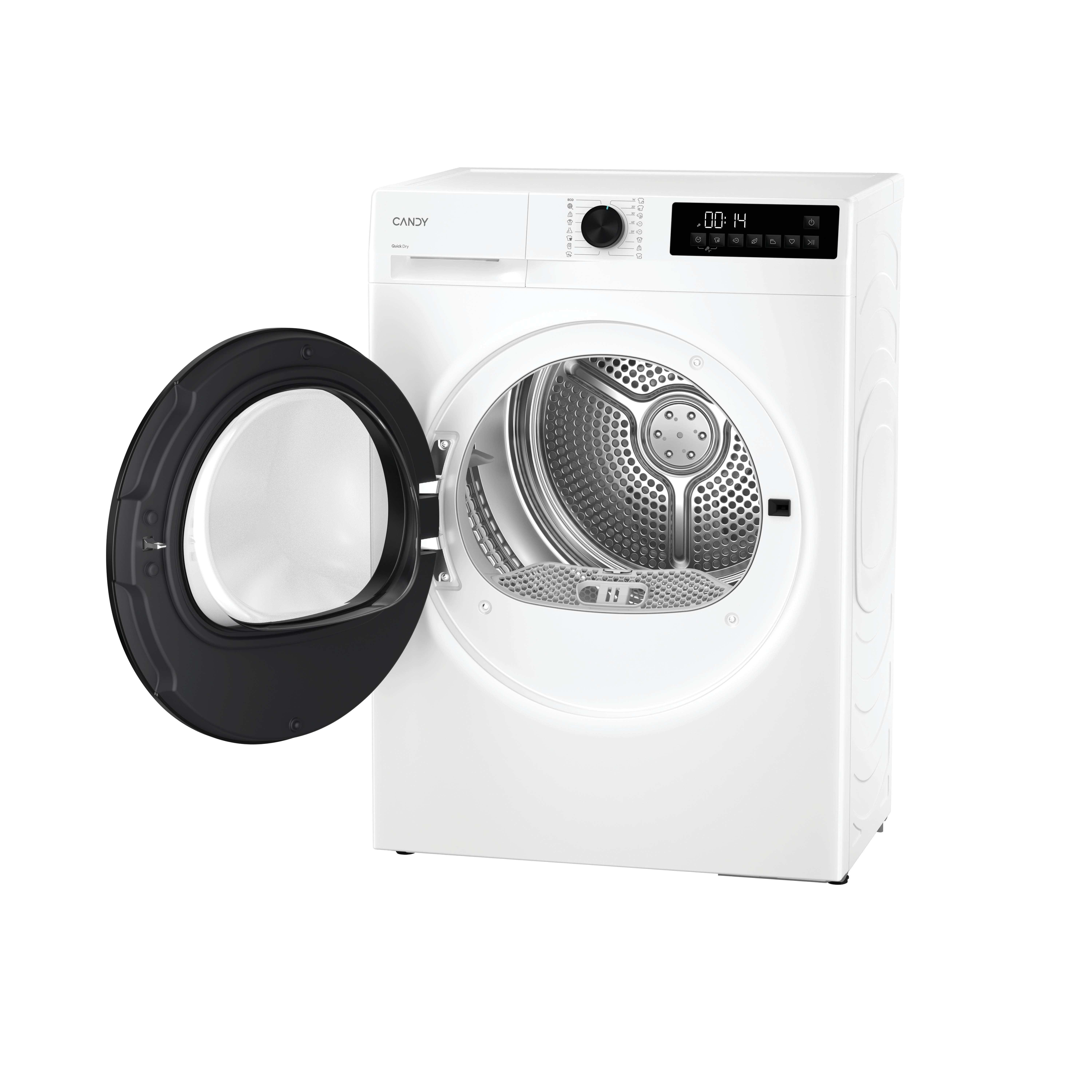 Candy PRODRY 300, Asciugatrice Slim 7 KG, Classe D, Bianco, Inverter, 5 Cicli rapidi, GDS 7N2G-S. Posizionamento dell'apparecchio: Libera installazione, Tipo di carica: Caricamento frontale, Sistema di asciugatura: Pompa di calore. Capacità cestello: 7 kg, Classe di efficienza della condensazione: B, Programmi di asciugatura: A colori, Quotidiano, Facile da stirare, Eco, Jeans/denim, Mix, Rapido, Rapido 14min, Sport,.... Partenza ritardata: 24 h. Classe efficienza energetica: D, Consumo energetico per 100 cicli: 109 kWh, Consumo energetico: 1,09 kWh. Profondità: 541 mm, Larghezza: 595 mm, Altezza: 850 mm