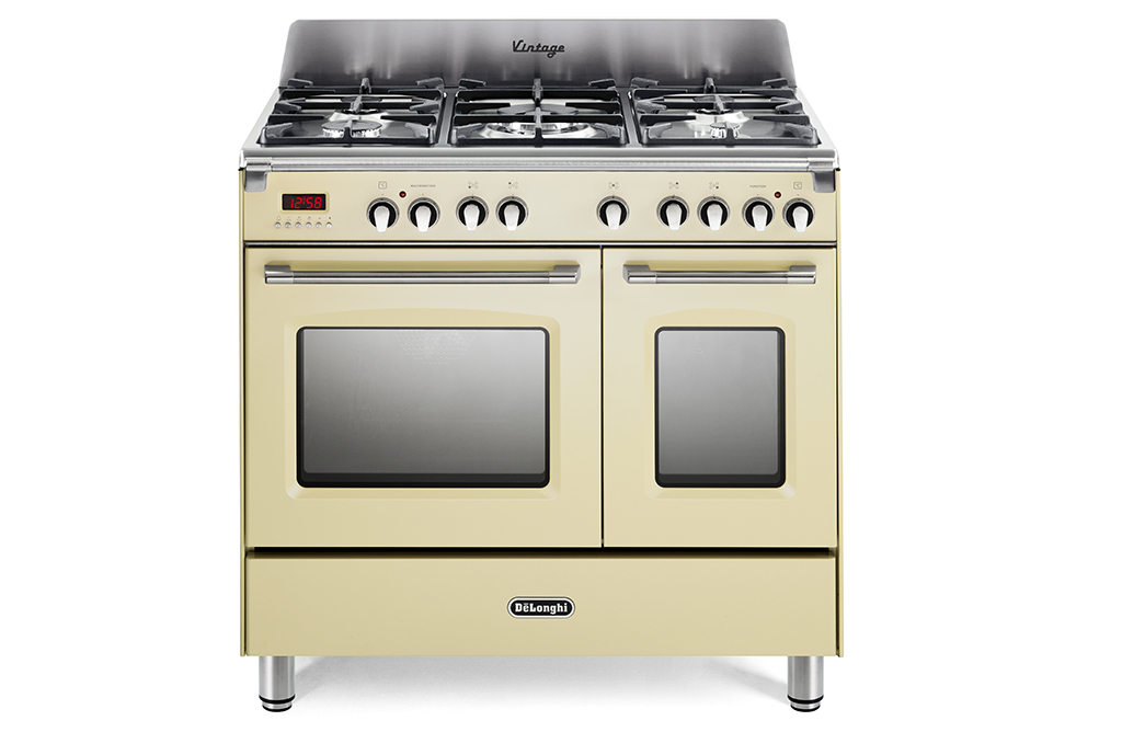 De’Longhi MEM 965T BX ED. Tipo di prodotto: Cucina freestanding, Colore del prodotto: Crema, Tipo di controllo: Pulsanti, Manopola. Tipo di piano cottura: Gas, Numero totale di fuochi: 5 Fornello(i), Tipo di superficie superiore: Acciaio inox. Dimensione del forno: Media, Sorgente di alimentazione del forno: Elettrico, Capacità netta del forno: 70 L. Dimensione del forno 2: Media, Fonte di alimentazione del forno 2: Elettrico, Posizione del forno 2: Inferiore destra. Classe efficienza energetica: A, Consumo energetico (convenzionale): 1,12 kWh, Consumo energetico (convezione forzata): 0,8 kWh