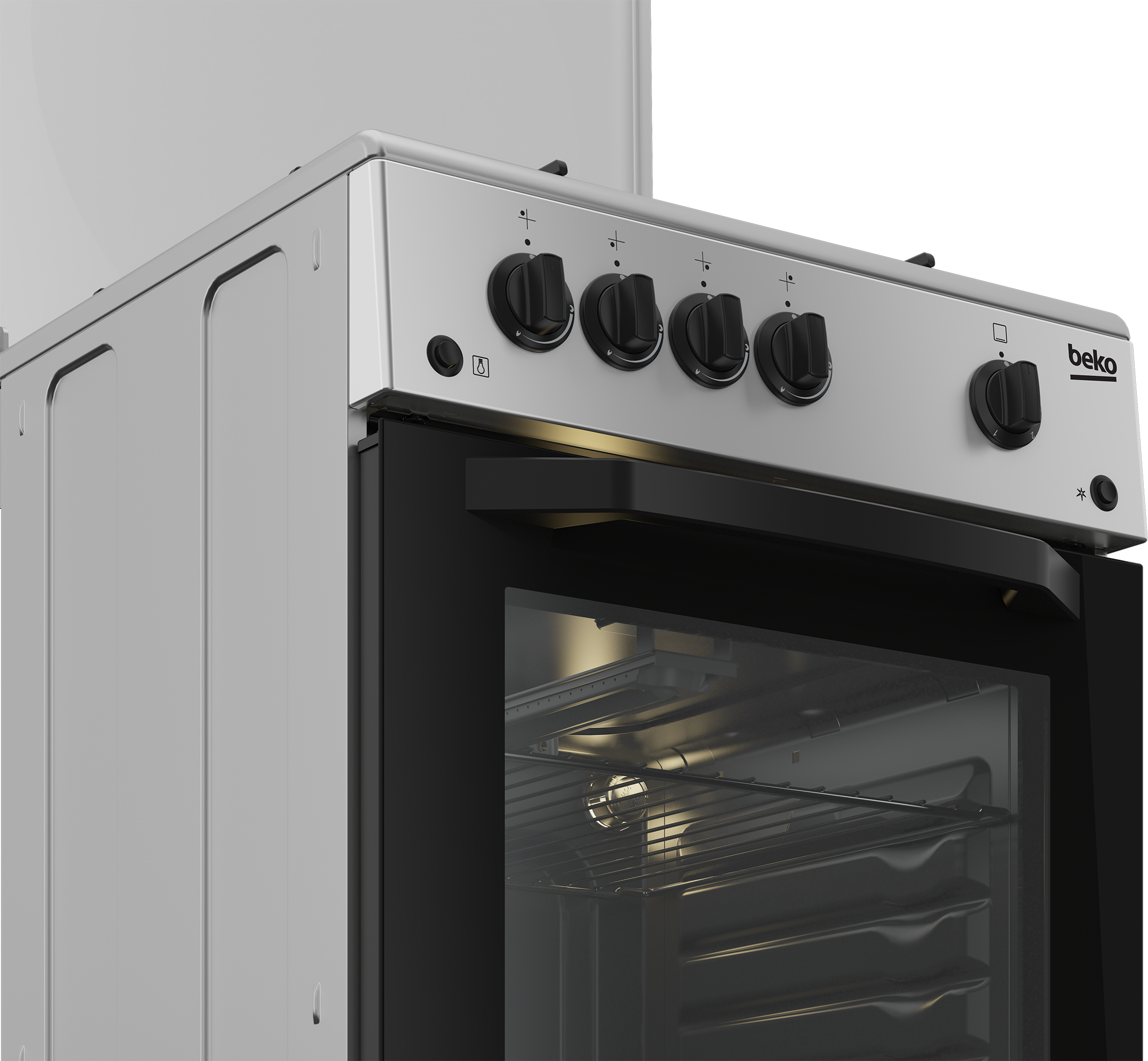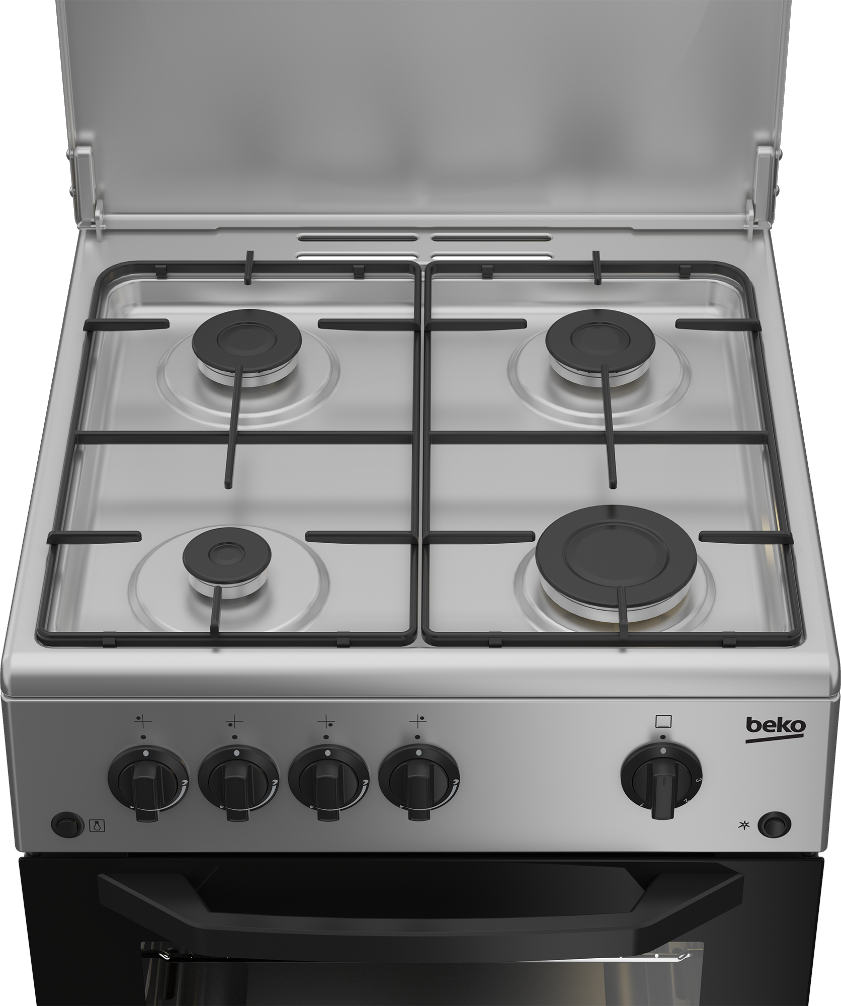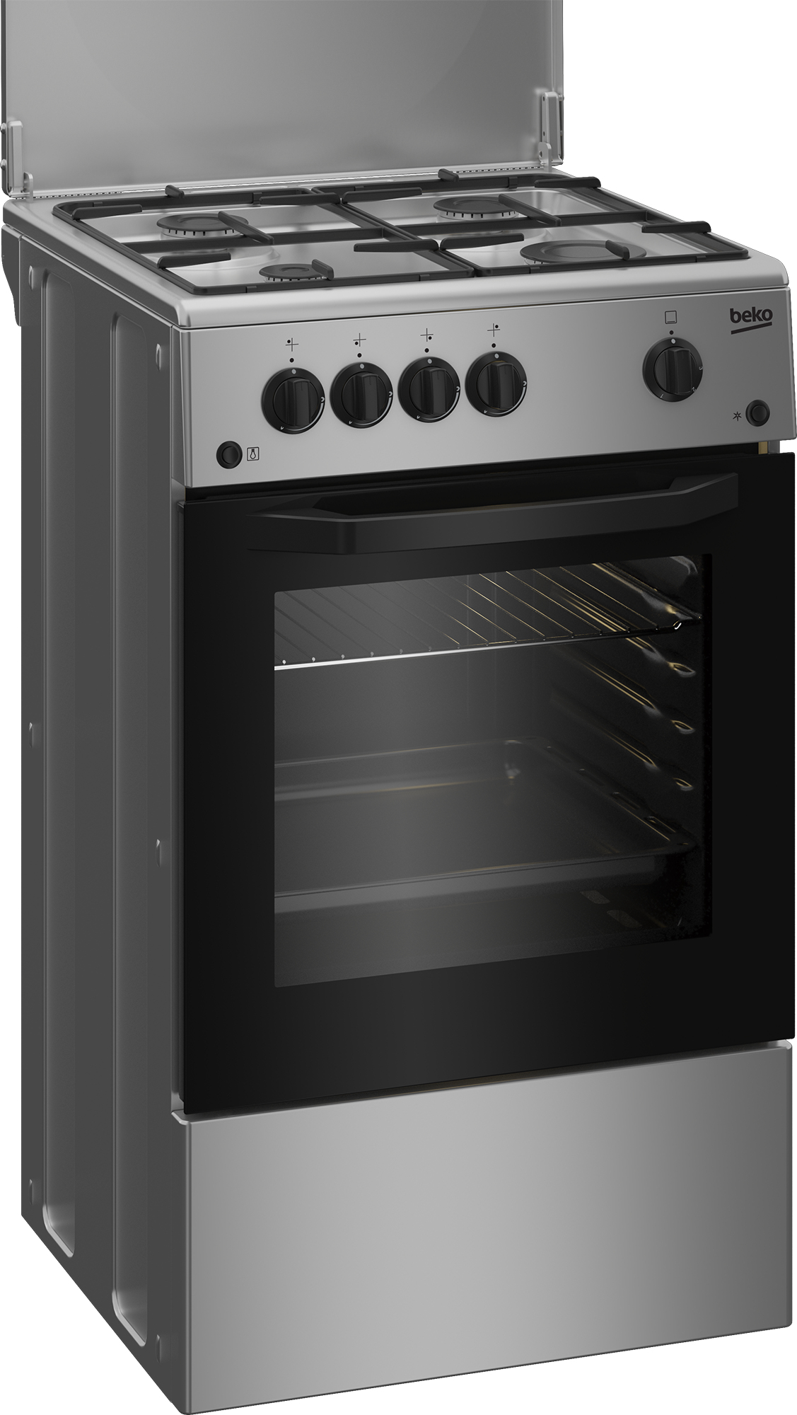 Beko CSG 42011 FS: Cucina a Gas, 50x50 cm. Tipo di prodotto: Cucina, Colore del prodotto: Argento, Tipo di controllo: Manopola. Tipo di piano cottura: Gas, Numero totale di fuochi: 4 Fornello(i), Tipo di superficie superiore: Acciaio inox. Sorgente di alimentazione del forno: Gas, Posizione del forno: Fondo, Apertura della porta del forno: Apertura dall'alto in basso. Potenza aggregata (gas): 9500 W, Tensione di ingresso AC: 220 - 230 V, Frequenza di ingresso AC: 50 Hz. Larghezza: 500 mm, Profondità: 500 mm, Altezza: 850 mm