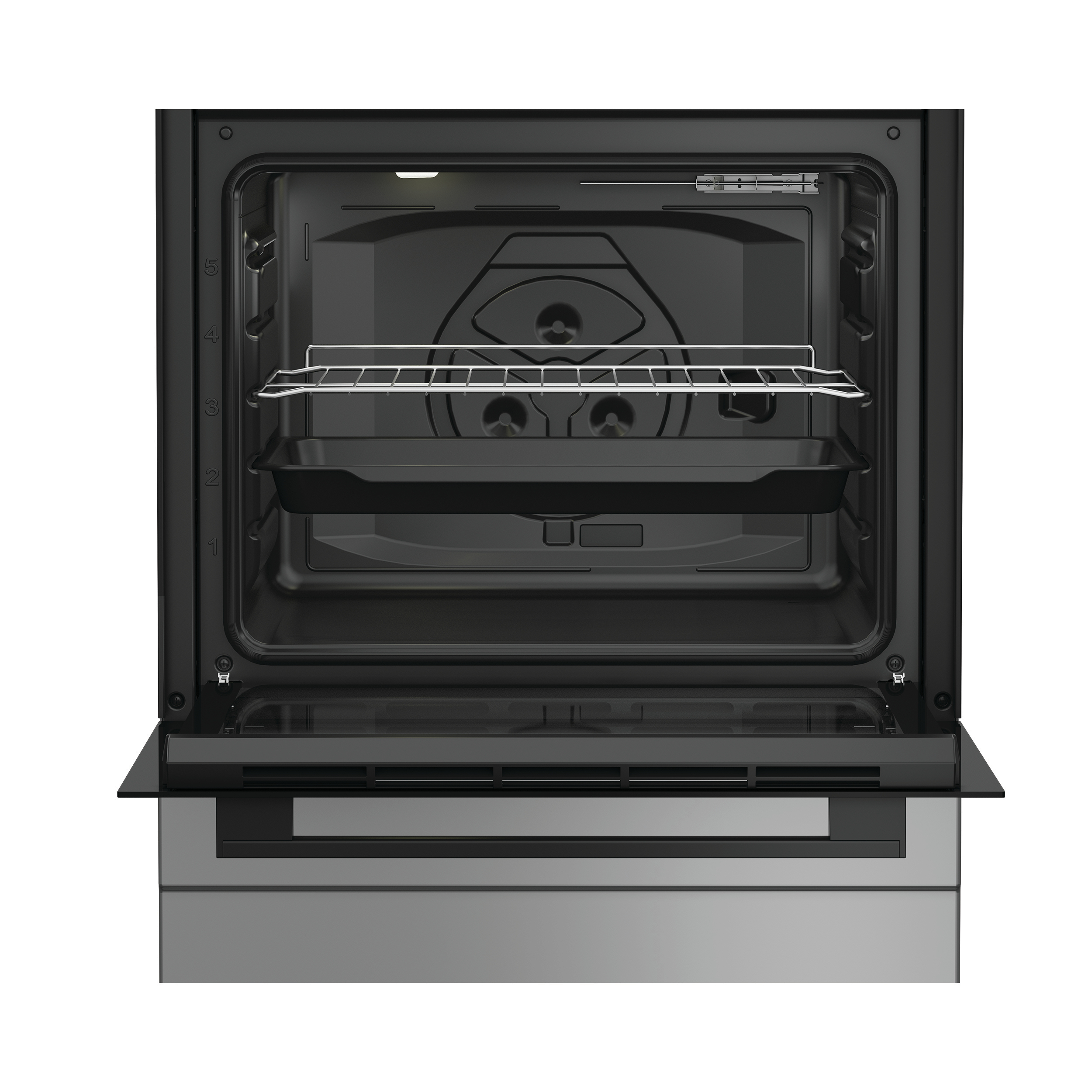 Indesit I6G3PMS. Tipo di prodotto: Cucina, Colore del prodotto: Acciaio inox, Tipo di controllo: Manopola. Tipo di piano cottura: Gas, Numero totale di fuochi: 4 Fornello(i), Tipo di superficie superiore: Acciaio inox. Dimensione del forno: Media, Sorgente di alimentazione del forno: Elettrico, Capacità netta del forno: 73 L. Tipo di timer del forno: Meccanico. Classe efficienza energetica: A, Consumo energetico (convenzionale): 0,82 kWh, Scala di efficienza energetica: Da A+++ a D