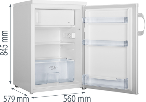 Gorenje RB493PW. Posizionamento dell'apparecchio: Libera installazione, Colore del prodotto: Bianco, Cerniera porta: Destra. Capacità netta totale: 119 L, Classe climatica: N-T, Classe emissione rumore: C. Capacità netta frigorifero: 105 L, Capacità lorda frigorifero: 106 L, Tipo di lampada: LED. Posizione del congelatore: Posto in alto, Capacità netta congelatore: 14 L, Capacità di congelamento: 2 kg/24h. Classe efficienza energetica: D, Consumo energetico annuo: 110 kWh, Scala di efficienza energetica: Da A a G