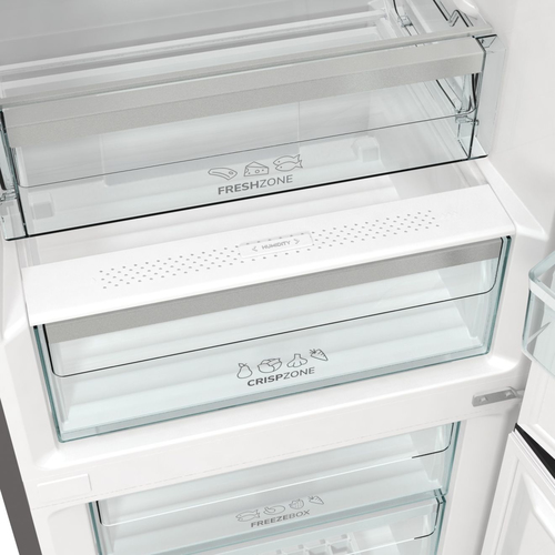 Gorenje RK6202AXL4. Capacità netta totale: 347 L. Cerniera porta: Destra, Tipo di display: LED. Classe climatica: N-ST, Emissione acustica: 38 dB. Capacità netta frigorifero: 237 L, Luce interna, Numero di ripiani frigorifero: 5. Capacità netta congelatore: 110 L, Capacità di congelamento: 5 kg/24h. Classe efficienza energetica: E, Consumo energetico annuo: 243 kWh. Colore del prodotto: Grigio, Metallico