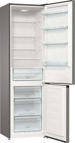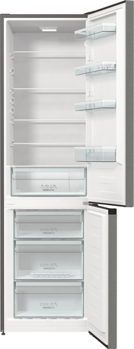 Gorenje RK6202ES4. Capacità netta totale: 349 L. Cerniera porta: Destra. Classe climatica: N-ST, Emissione acustica: 38 dB. Capacità netta frigorifero: 239 L, Luce interna, Numero di ripiani frigorifero: 5, Numero di cassetti per verdura: 1. Capacità netta congelatore: 110 L, Capacità di congelamento: 5 kg/24h. Classe efficienza energetica: E, Consumo energetico annuo: 244 kWh. Colore del prodotto: Grigio, Metallico