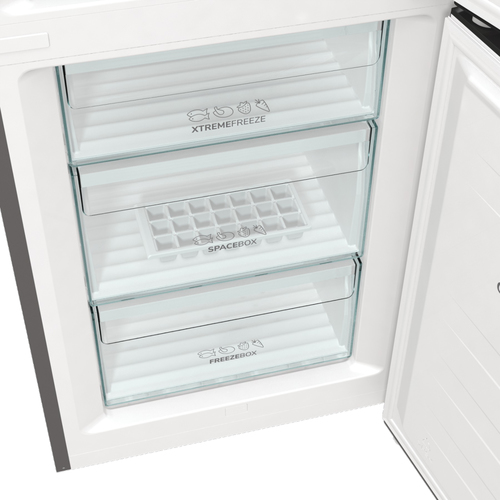 Gorenje RK6193AXL4. Capacità netta totale: 352 L, Classe climatica: SN-ST, Emissione acustica: 38 dB. Capacità netta frigorifero: 231 L, No Frost (frigorifero), Numero di ripiani frigorifero: 3, Numero di cassetti per verdura: 1. Capacità netta congelatore: 121 L, Capacità di congelamento: 5,4 kg/24h, No Frost (congelatore). Compartimento zona fresca. Classe efficienza energetica: D, Consumo energetico annuo: 196 kWh. Colore del prodotto: Bianco