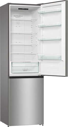 Gorenje NRK6202EXL4. Capacità netta totale: 331 L. Tipo di display: LED. Classe climatica: SN-ST, Emissione acustica: 38 dB. Capacità netta frigorifero: 235 L, No Frost (frigorifero), Sistema Multi-Airflow (frigorifero), Luce interna, Numero di ripiani frigorifero: 5. Capacità netta congelatore: 96 L, Capacità di congelamento: 9 kg/24h, No Frost (congelatore). Classe efficienza energetica: E, Consumo energetico annuo: 245,83 kWh. Colore del prodotto: Grigio