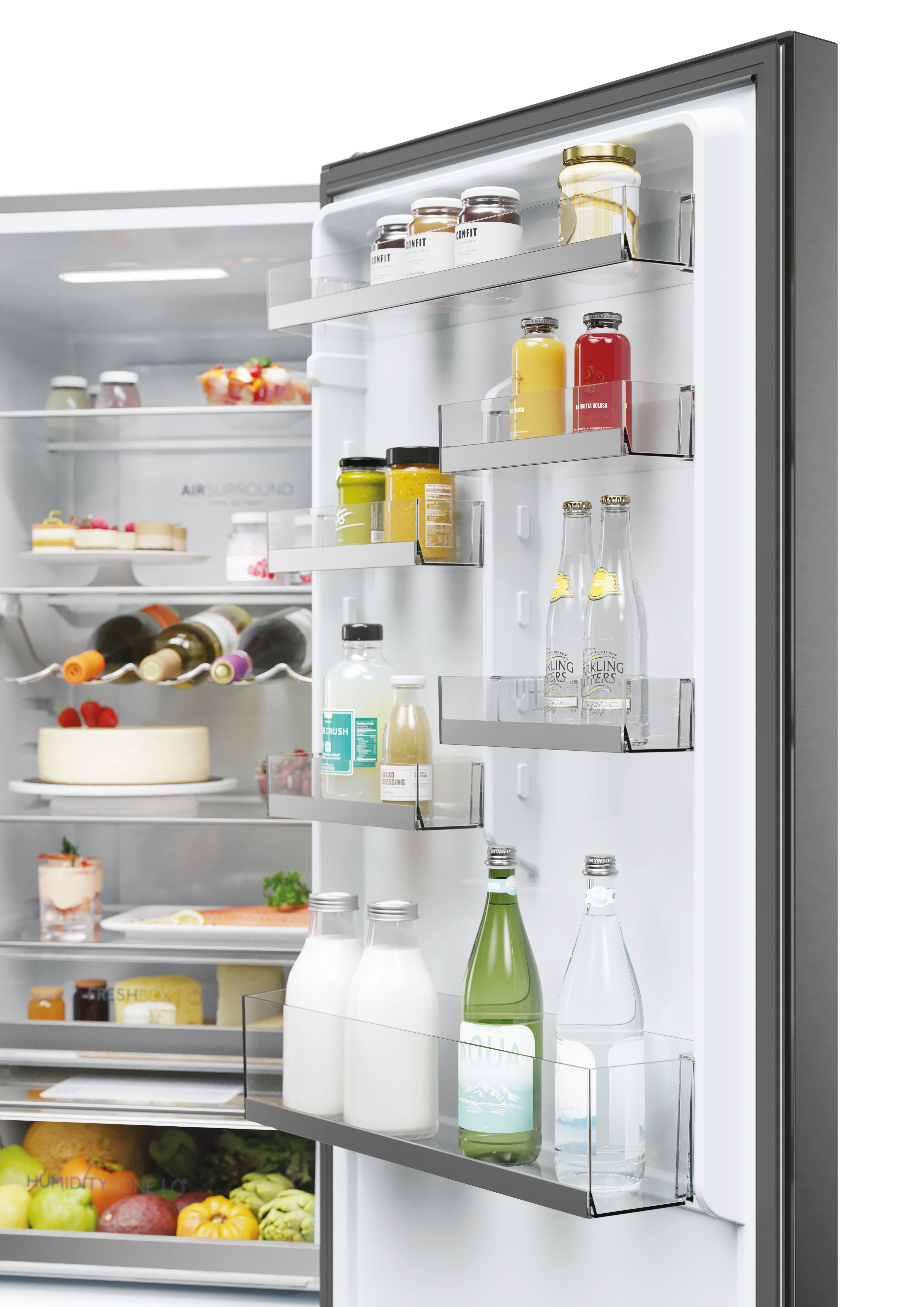 Questo frigorifero non solo offre una grande capacità, ma anche una gestione dello spazio personalizzabile. Puoi scegliere la posizione dei tuoi ripiani fino a 100 layout, a seconda delle tue esigenze.