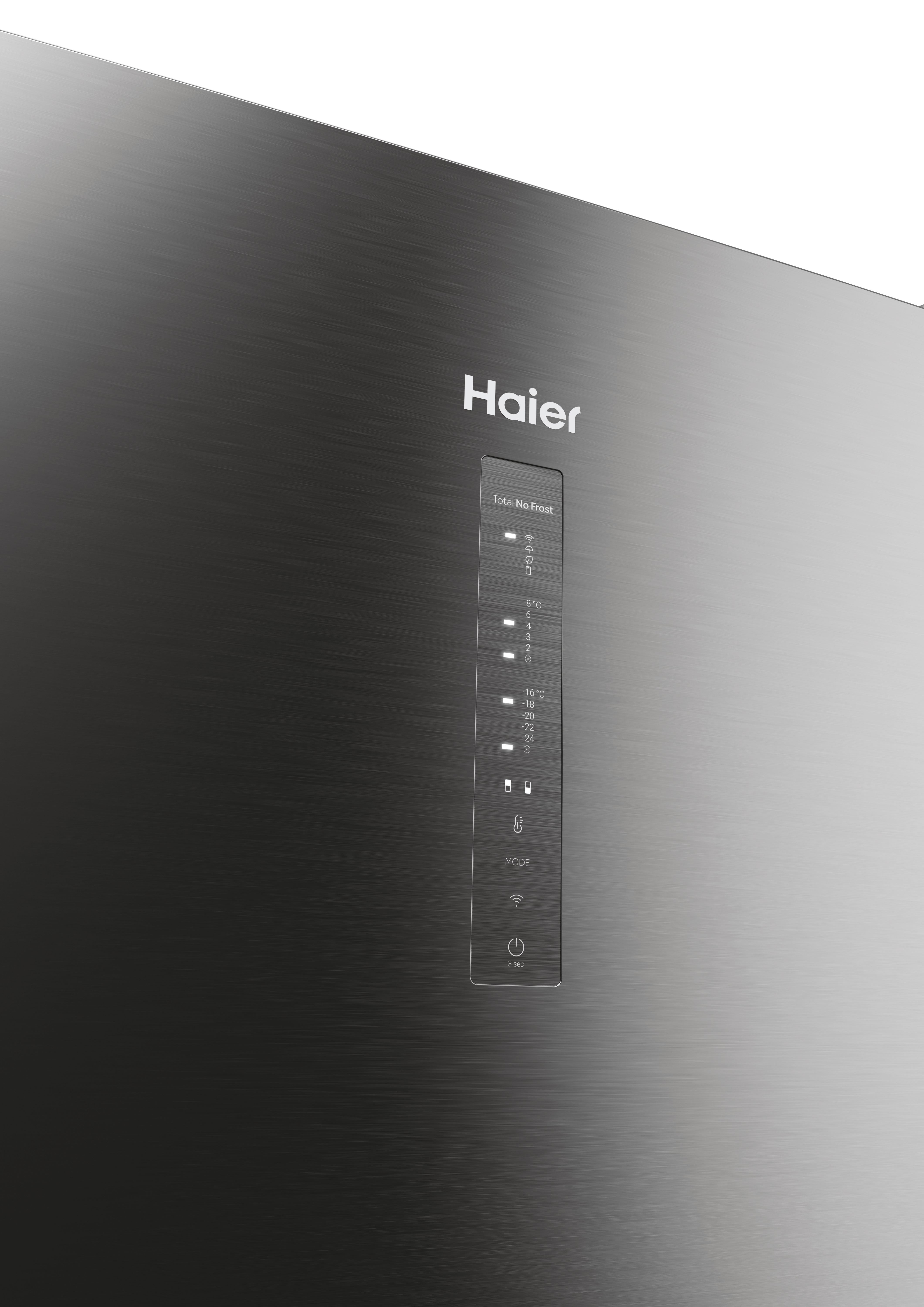 Nella parte superiore, il frigorifero ha un display dove è possibile impostare la temperatura del frigorifero (da 2°C a 8°C) e del congelatore (da -16°C a -24°C). Dal display è possibile impostare altre funzioni come holiday, eco, super cool, super freeze e connettere il proprio frigorifero al WIFI grazie alla nuova app hOn.