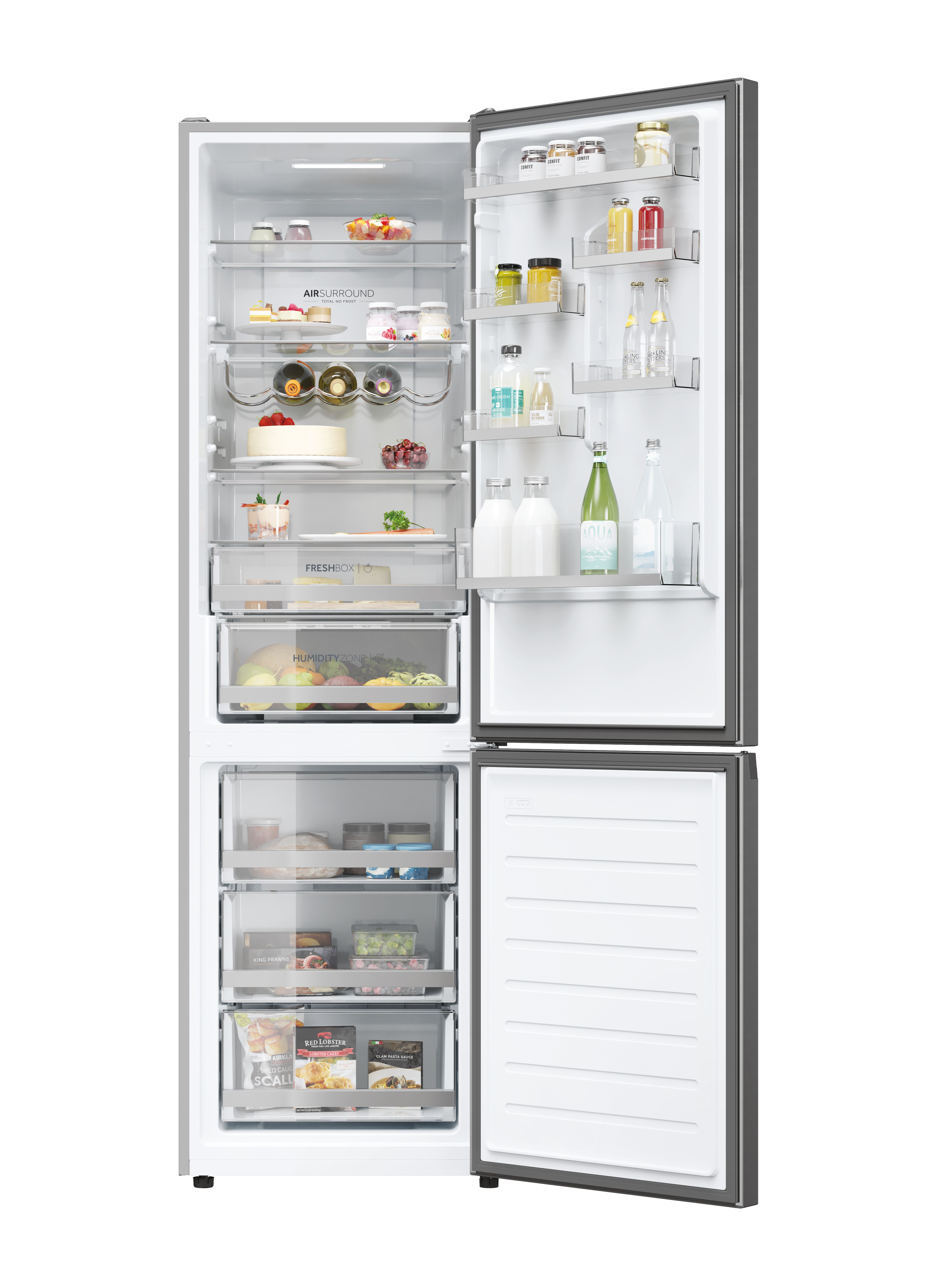 Con Haier Air Surround Fresher Tech, l'aria scorre all’interno del frigorifero in modo più omogeneo così da mantenere il gusto, la consistenza e la succosità degli alimenti fino al 99%* dopo 7 giorni come il giorno 1. Infatti, grazie alle speciali uscite laterali sulla colonna, questo sistema distribuisce l'aria fredda uniformemente così da avvolgere gli alimenti in tutta la cavità del frigorifero ed evitando il flusso diretto sugli stessi, al fine di mantenerne la consistenza. *Risultati dei test rilasciati da un laboratorio tecnico esterno indipendente confrontando un frigorifero con tecnologia Total No Frost Circle + con un frigorifero con tecnologia a flusso diretto.