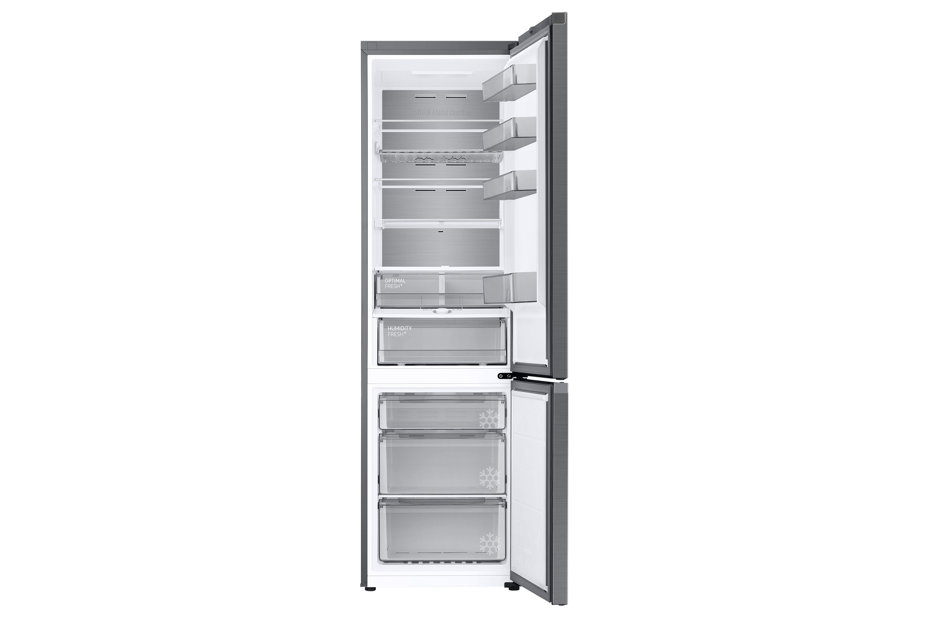 Samsung Frigorifero Combinato EcoFlex AI 2m 387L RL38C776ASR. Capacità netta totale: 387 L. Cerniera porta: Destra. Classe climatica: SN-T, Emissione acustica: 35 dB. Capacità netta frigorifero: 273 L, No Frost (frigorifero), Luce interna, Numero di ripiani frigorifero: 4. Capacità netta congelatore: 114 L, Capacità di congelamento: 8 kg/24h, No Frost (congelatore). Compartimento zona fresca. Classe efficienza energetica: A, Consumo energetico annuo: 108 kWh. Colore del prodotto: Acciaio inox