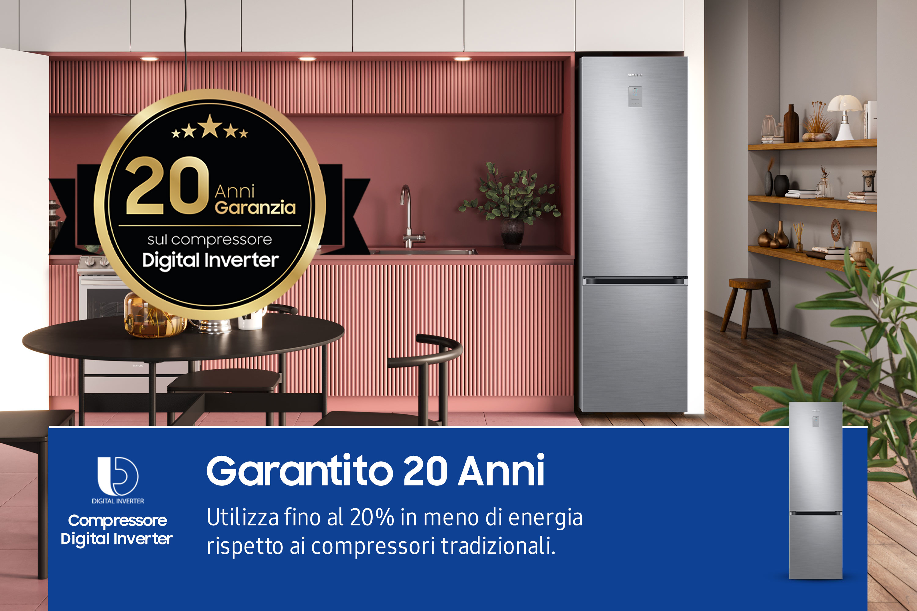 Alta efficienza energetica, meno rumori e prestazioni più durature. Il compressore Digital Inverter regola automaticamente la propria velocità in base alleffettiva necessità di raffreddamento. Silenzioso, efficiente e a lunga durata, il compressore è accompagnato da 20 anni di garanzia.