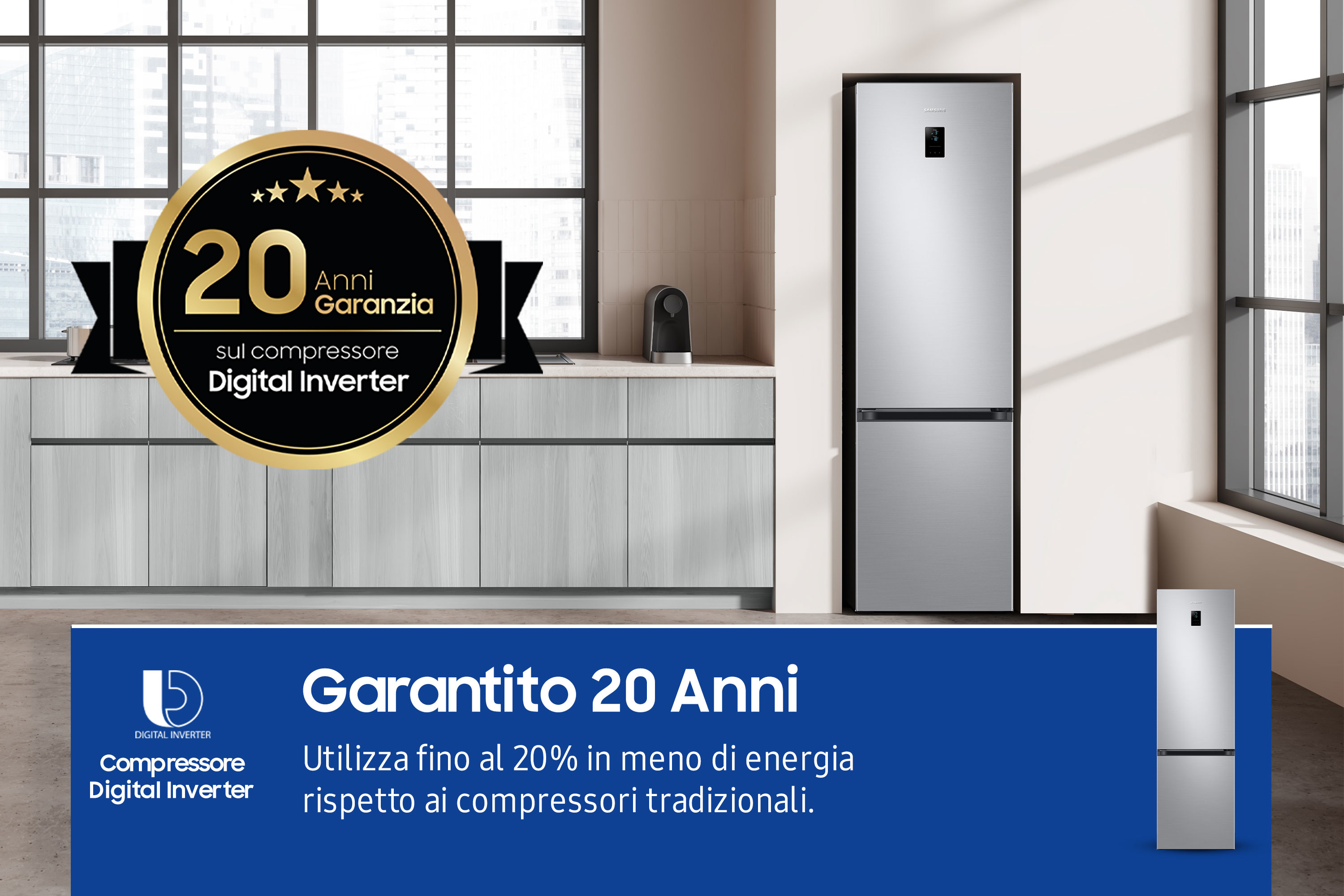 Alta efficienza energetica, meno rumori e prestazioni più durature. Il compressore Digital Inverter regola automaticamente la propria velocità in base alleffettiva necessità di raffreddamento. Silenzioso, efficiente e a lunga durata, il compressore è accompagnato da 20 anni di garanzia.