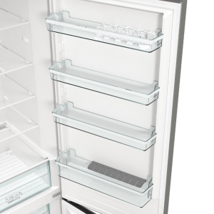 Gorenje NRK62CA2XL4. Capacità netta totale: 361 L. Tipo di display: LED. Classe climatica: N-ST, Emissione acustica: 35 dB. Capacità netta frigorifero: 255 L, No Frost (frigorifero), Sistema Multi-Airflow (frigorifero), Numero di ripiani frigorifero: 5, Numero di cassetti per verdura: 1. Capacità netta congelatore: 106 L, Capacità di congelamento: 13 kg/24h. Classe efficienza energetica: C, Consumo energetico annuo: 164 kWh. Colore del prodotto: Grigio